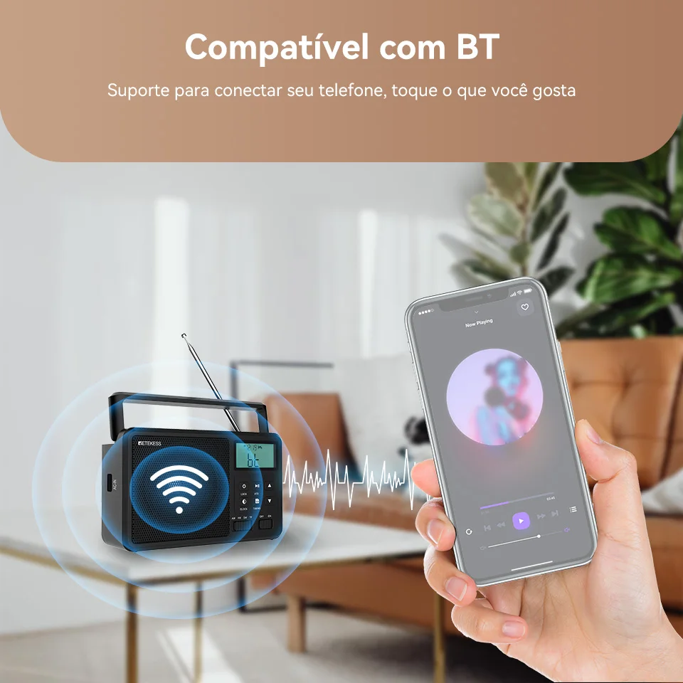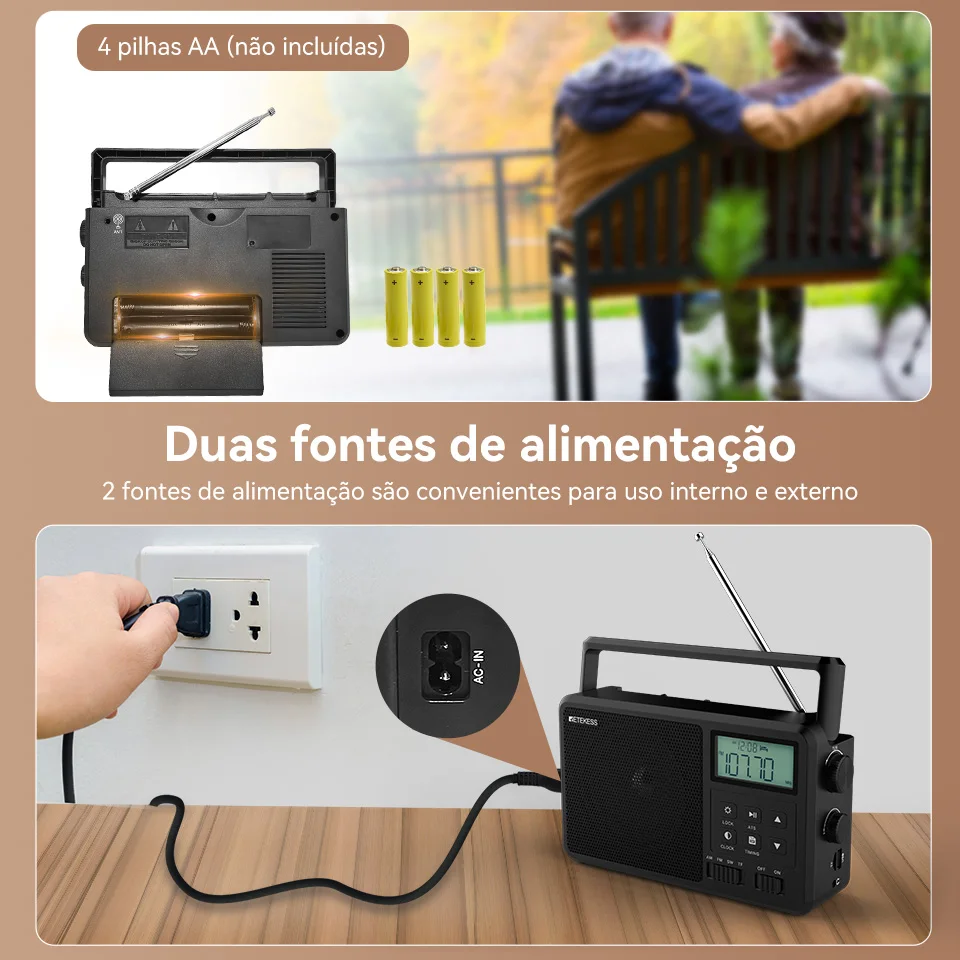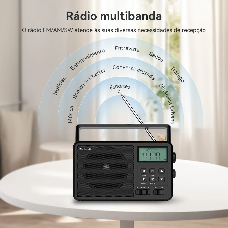 Retekess tr638 rádio portátil am fm sw todas as ondas rádio bluetooth compatível rádio de ondas curtas bateria operado despertador cartão tf