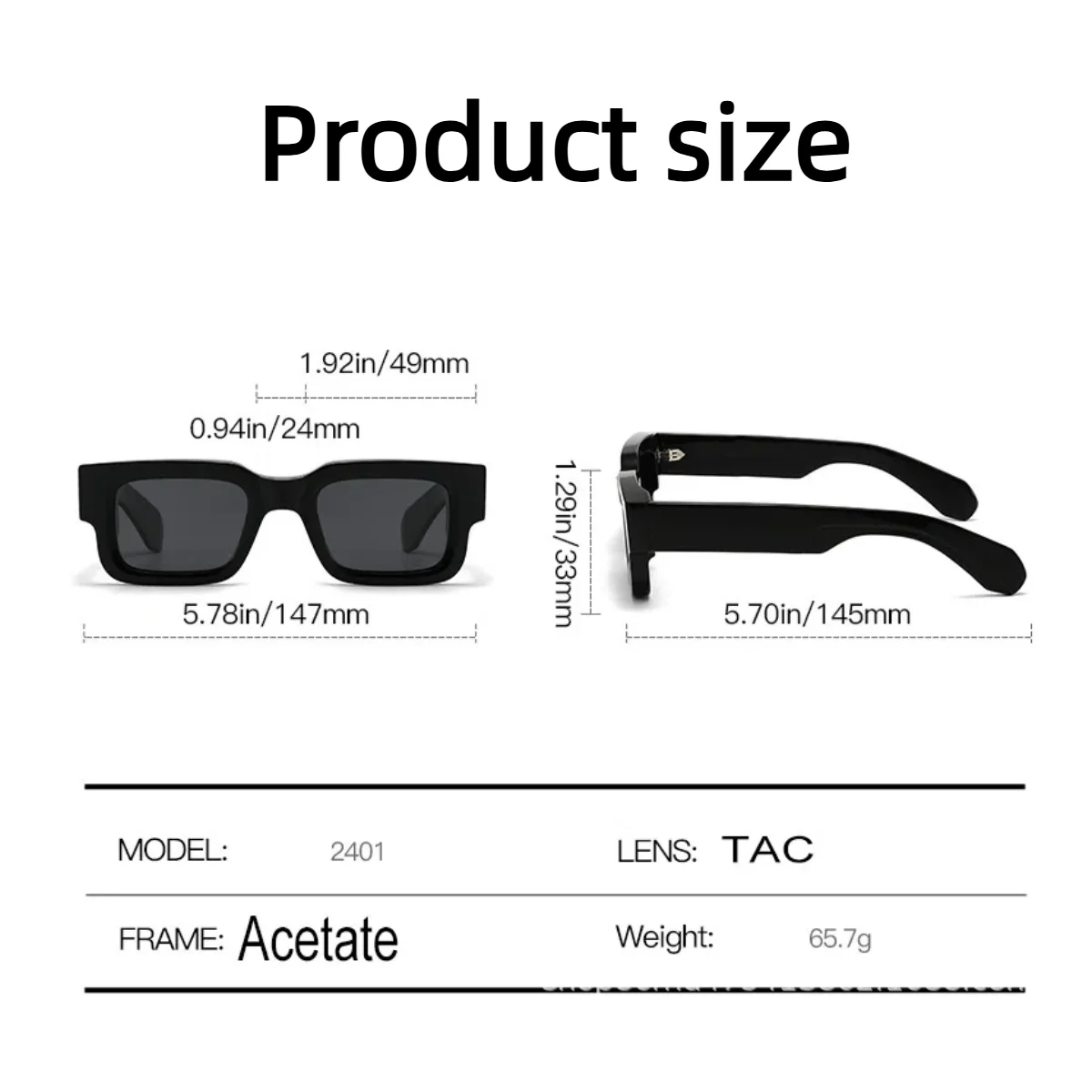- Estilo quadrado versátil para diversos looks.