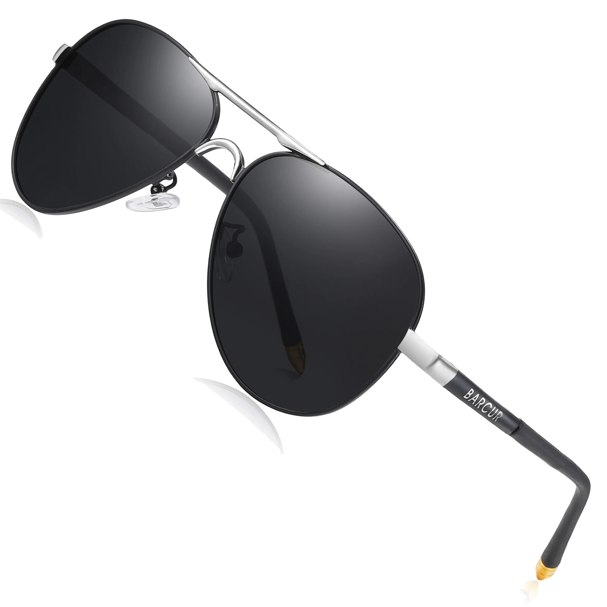 BARCUR-Óculos Pilot clássicos para homens e mulheres, óculos polarizados, óculos