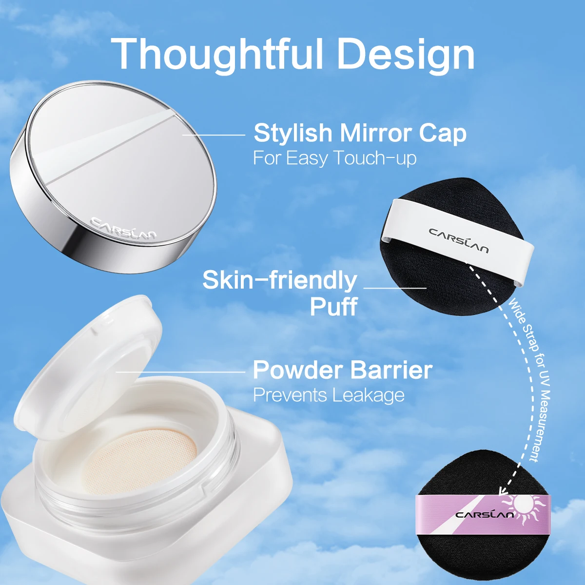 CARSLAN Cloud Touch Protetor solar de foco suave pó de configuração solta FPS 40 24H de longa duração à prova d'água à prova de suor maquiagem em pó facial