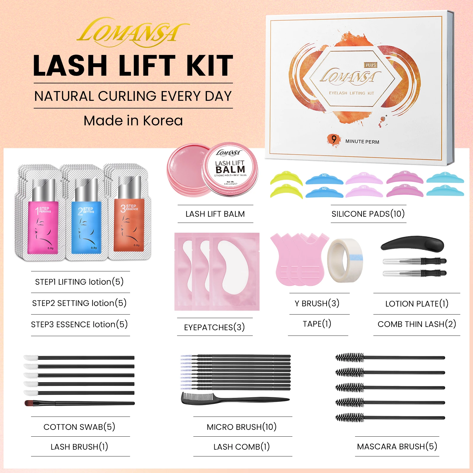 Lomansa lash lift kit de levantamento de cílios 8-12 minutos levantamento instantâneo perming curling para sobrancelha cílios perm kit dura 6-8 semanas