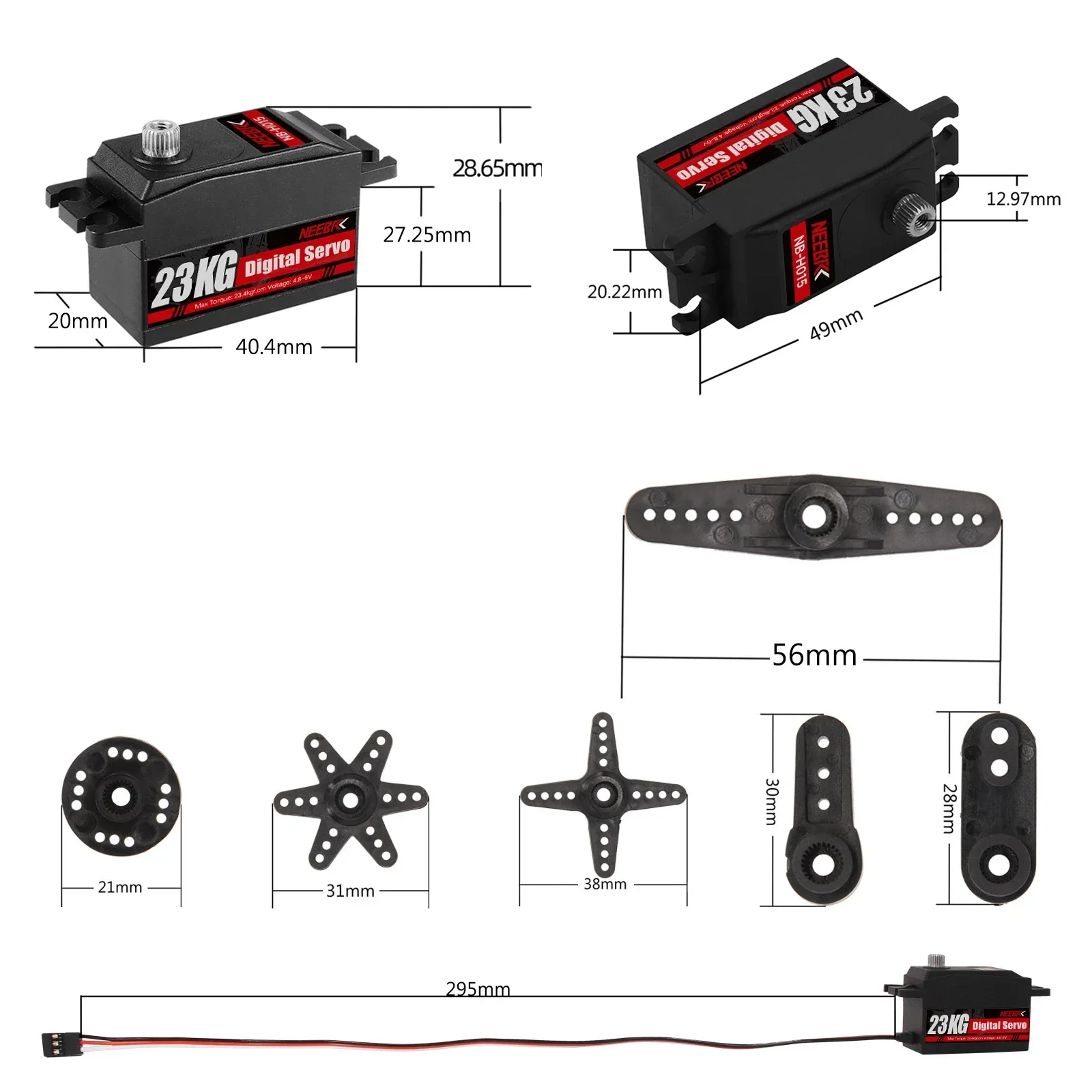 NEEBRC Servo Digital de Alto Torque de 23KG com Corpo Curto e Engrenagem Metálica para Carros RC 1/8 1/10 Axial Scx10 TRX Acessórios para Crawler