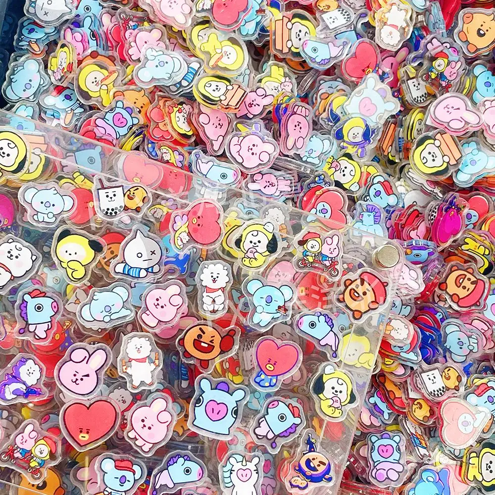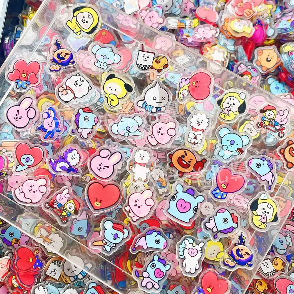 40PCS 2CM Kawaii BT21 Folha Acrílica Acessório DIY Decoração Material para Capa de Celular CHIMMY COOKY KOYA TATA Brinquedos de Anime para Presente