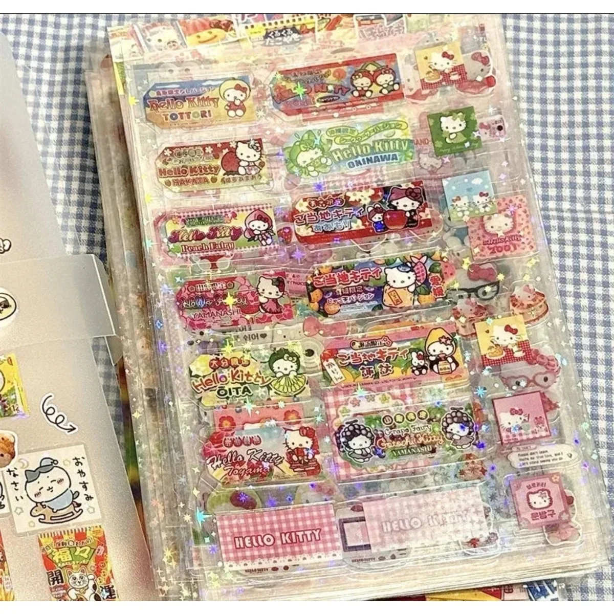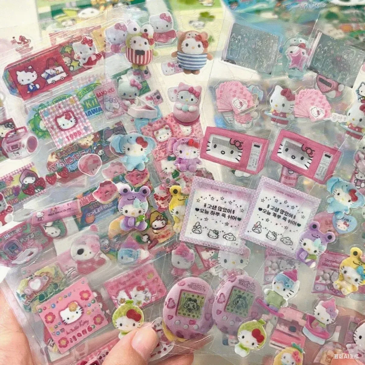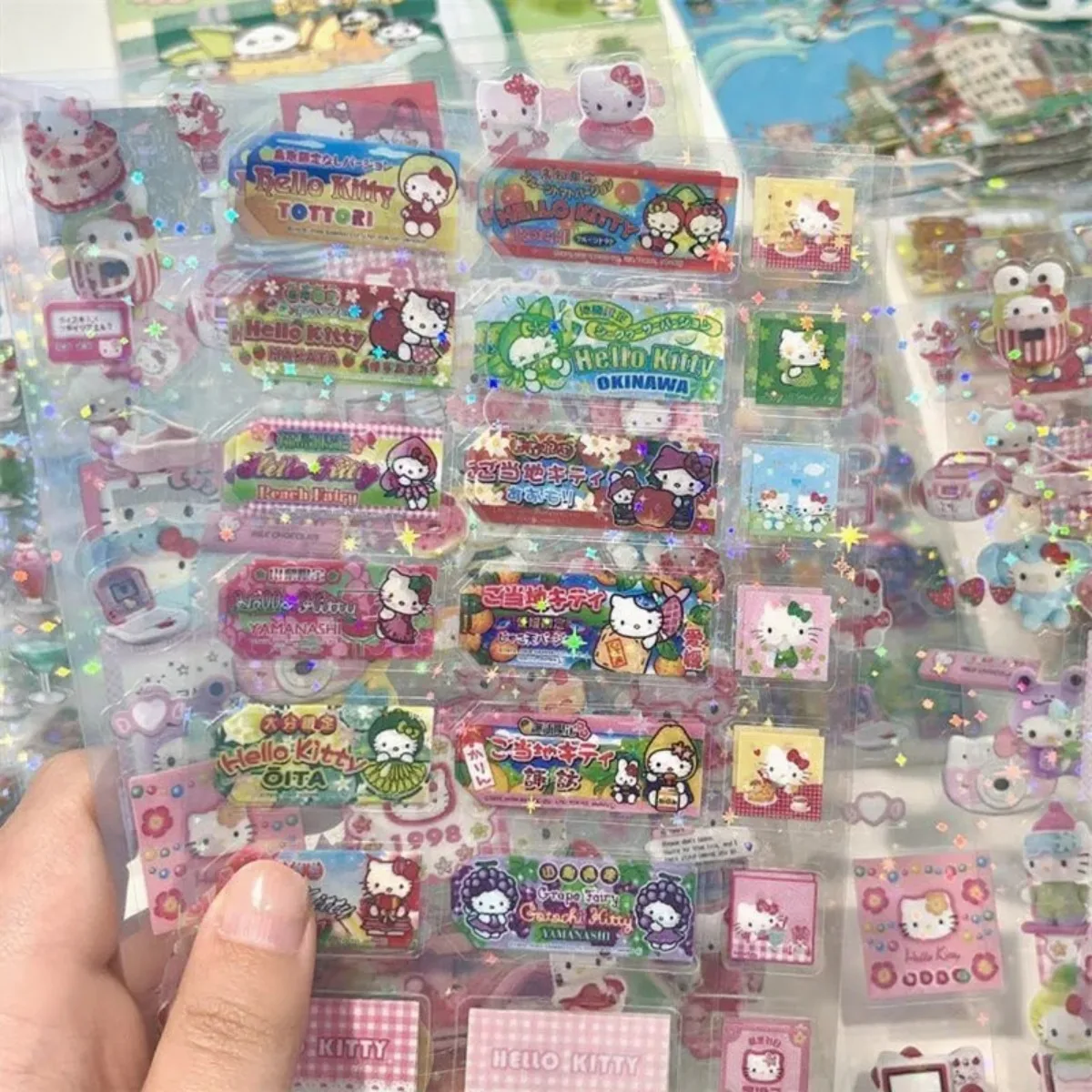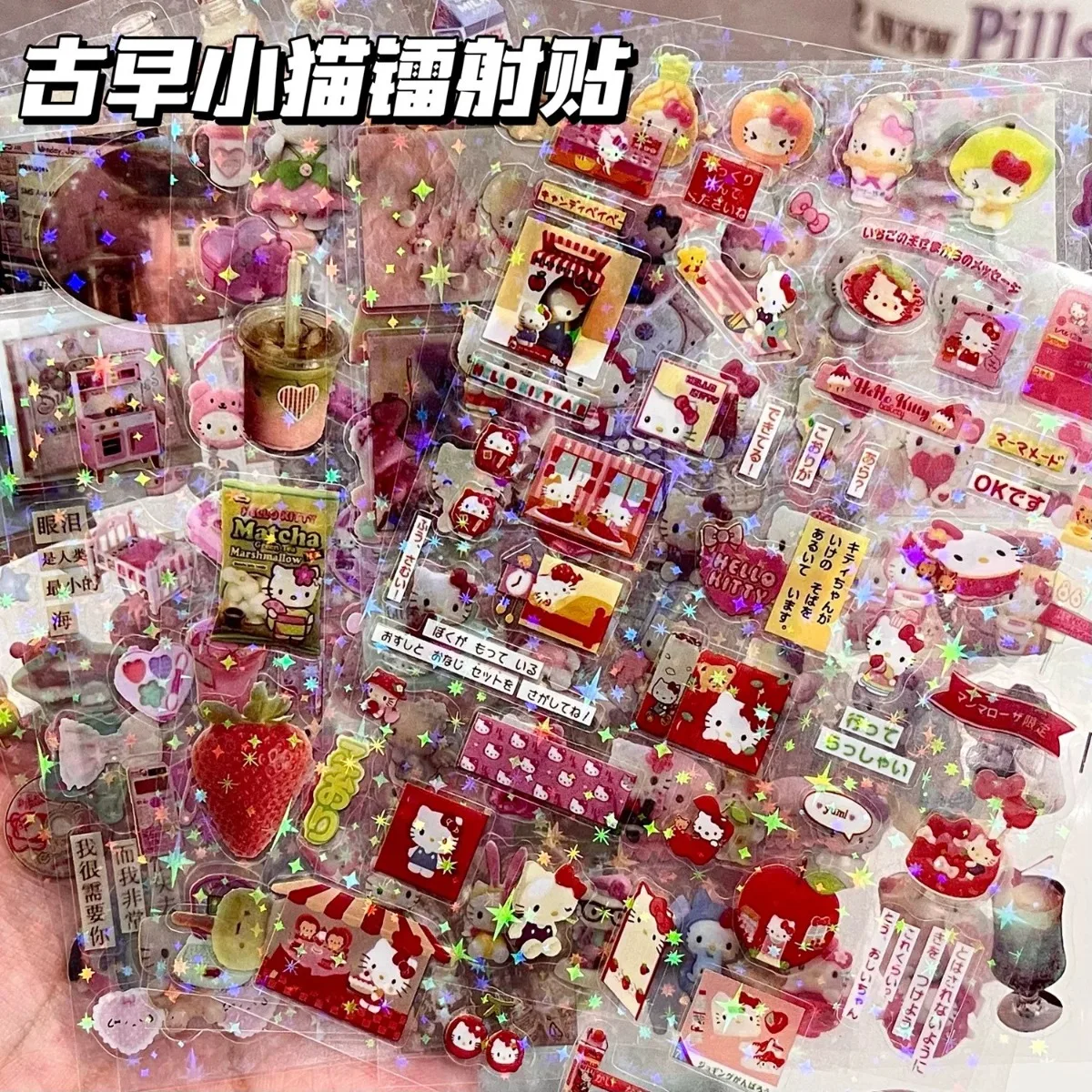 5PCS Adesivos de Anime Hello Kitty, Adesivos de Gato em Estilo Cartoon, Adesivos Laser Brilhantes DIY, Material para Cadernos, Brinquedo Presente para Meninas