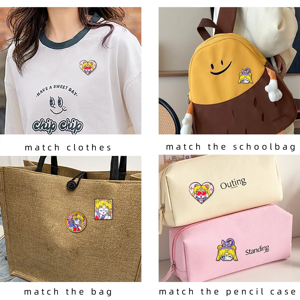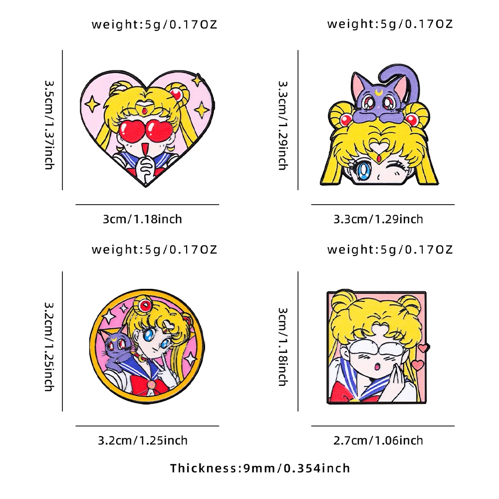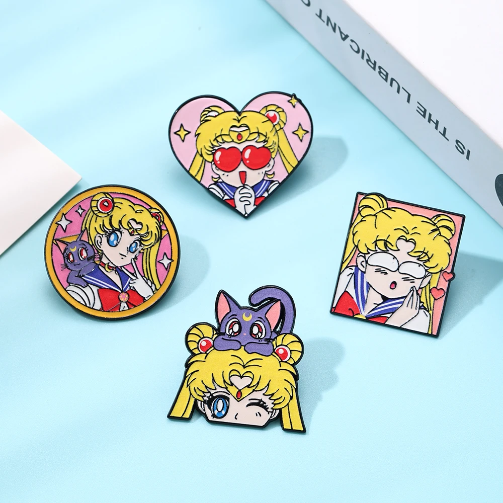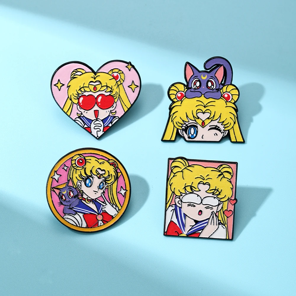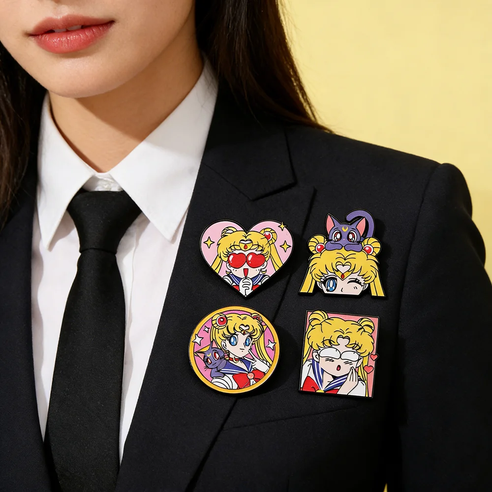 Conjunto de 4 Broches Esmaltados de Sailor Moon para Mulheres, Pins de Lapela e Emblemas de Moda para Mochilas e Acessórios de Vestuário - Kit de Presente