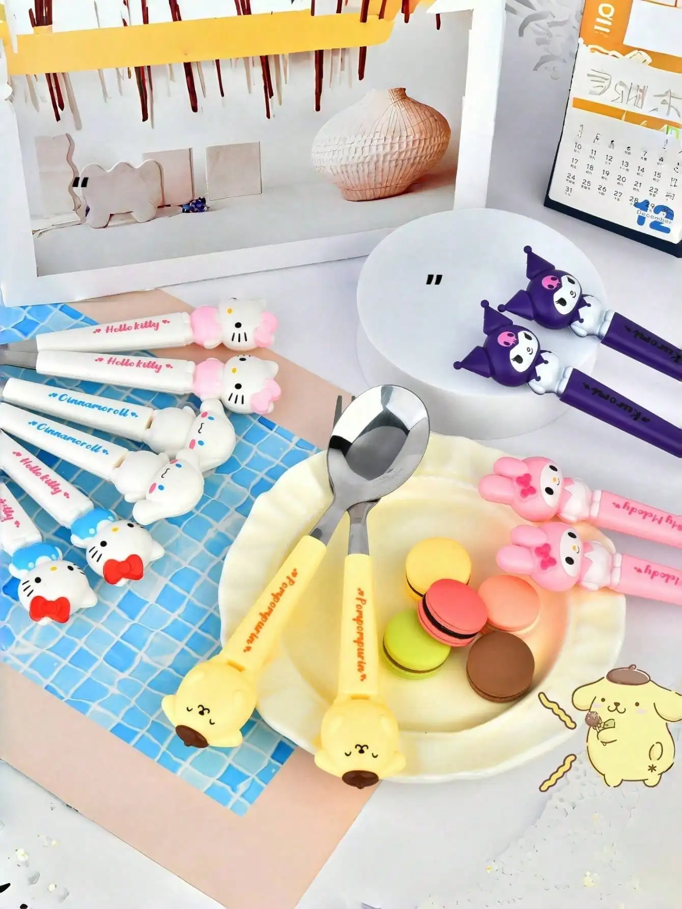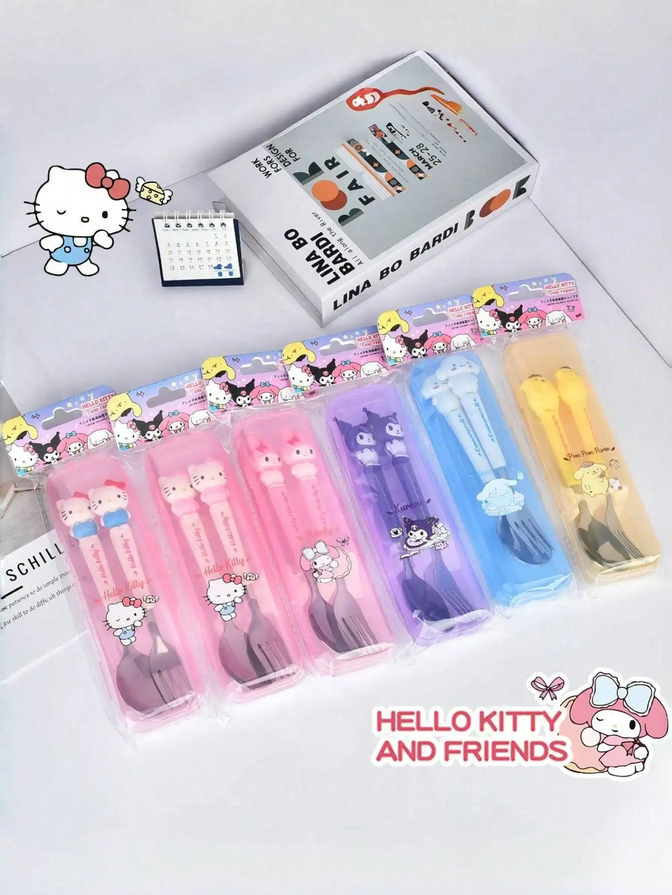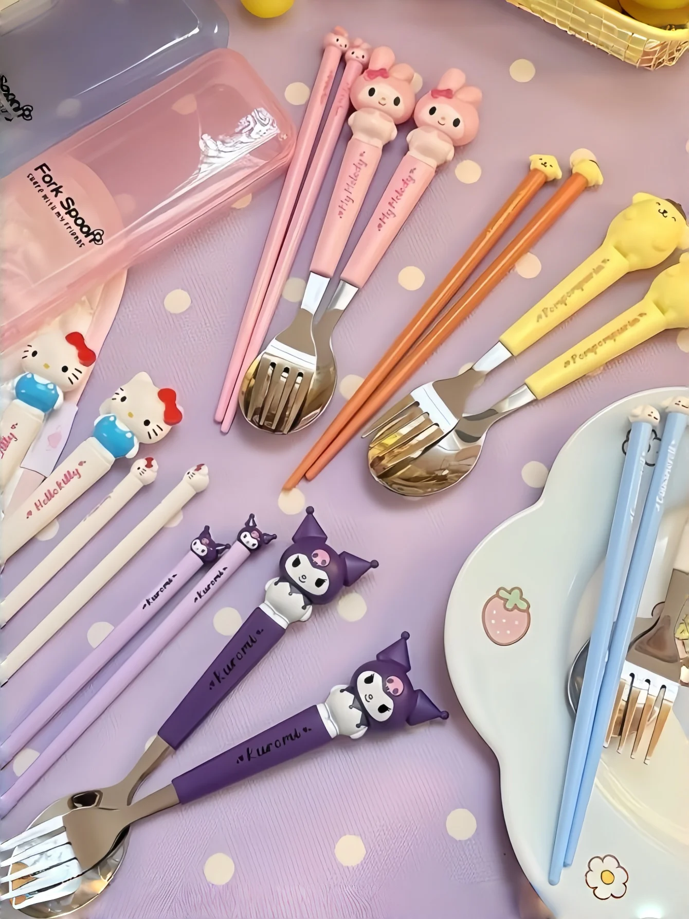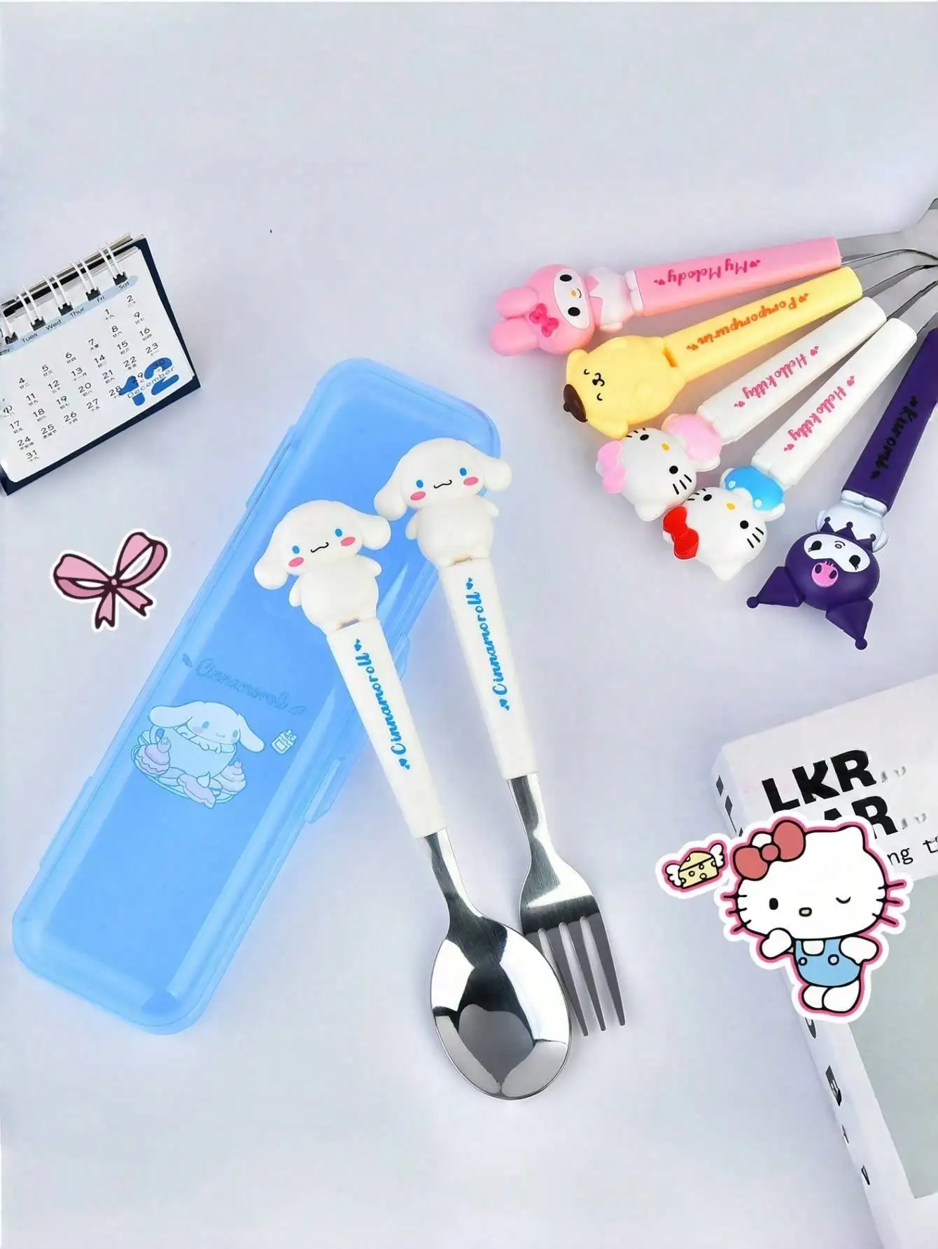 Conjunto de garfo e colher de aço inoxidável, 2 unidades/conjunto, talheres portáteis e reutilizáveis da Hello Kitty, escolha perfeita para presentes de Natal
