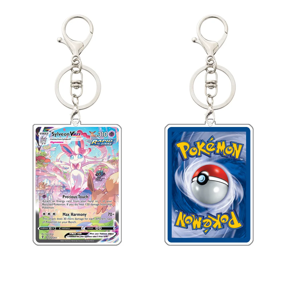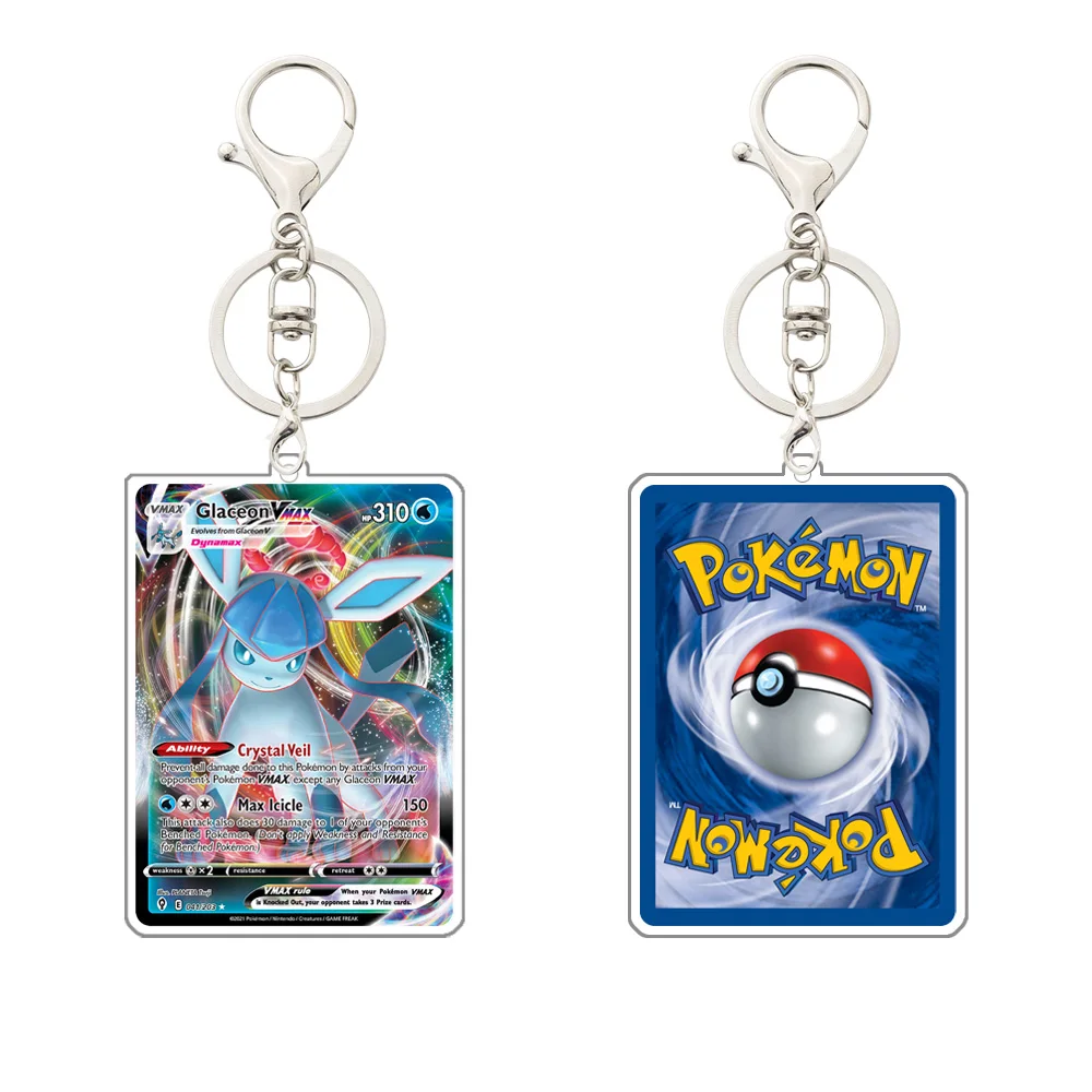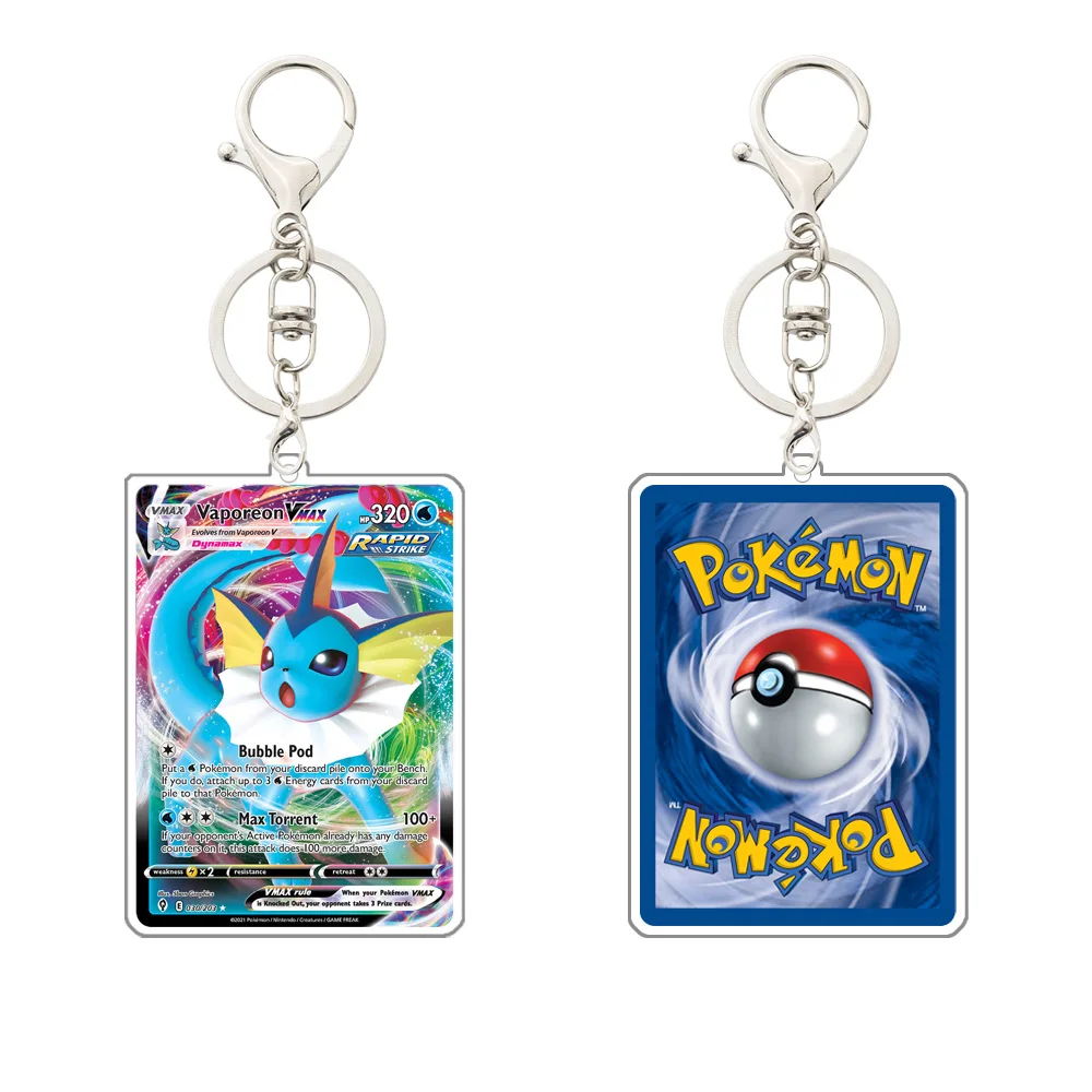 Pokemon eevee vaporeon sylveon flareon jolteon glaceon espeon leafeon umbreon v max acrílico cartão de jogo chaveiro pingente