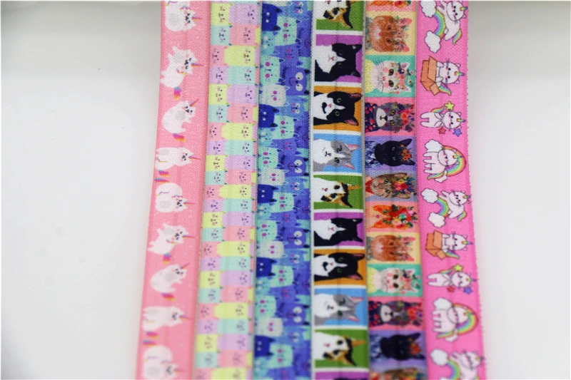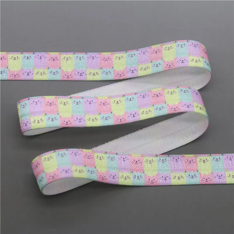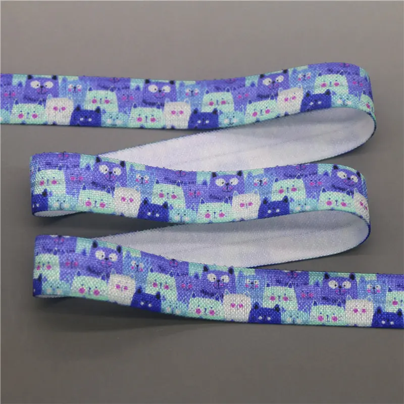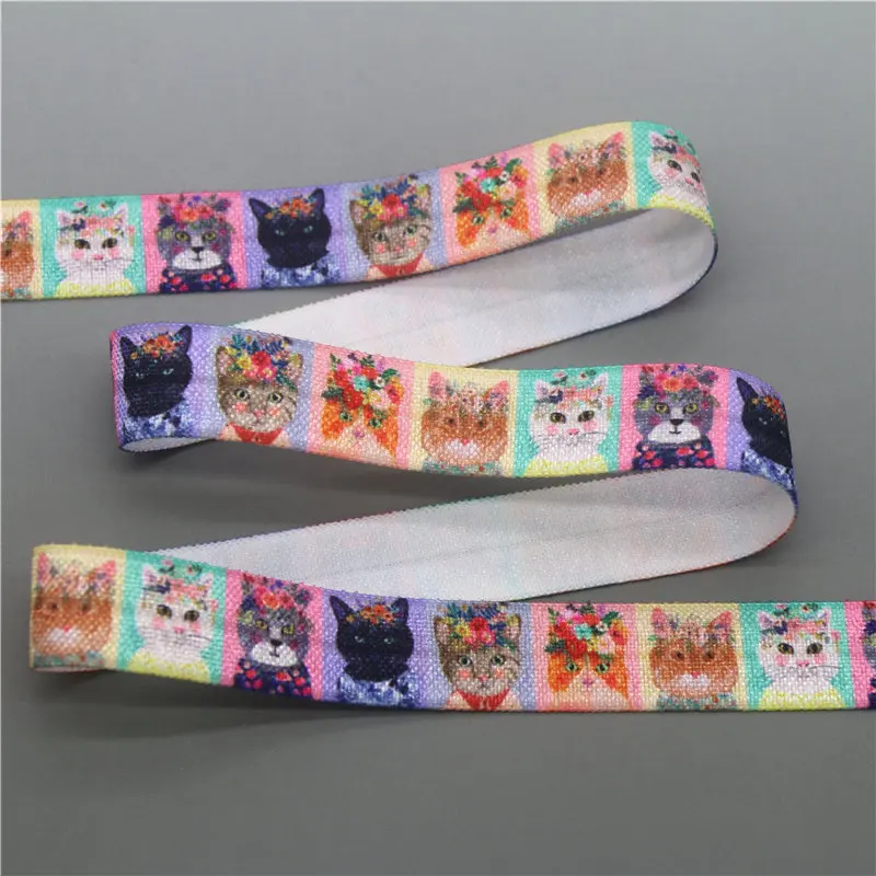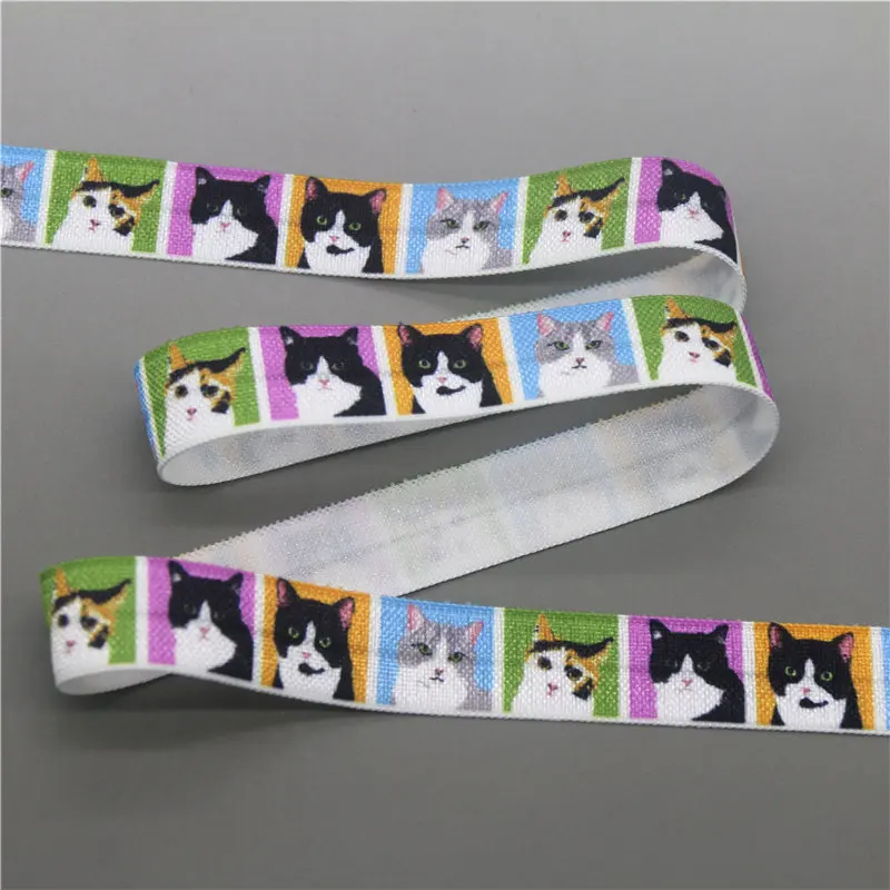 Dhk 5/8 50 50 50 jardas gato impresso fold elástico inimigo estiramento fita hairbow headwear bandana diy oem s1345