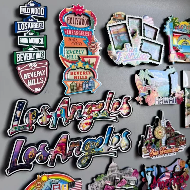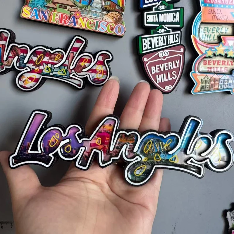 Ímãs do refrigerador dos EUA para a decoração Home, PVC macio, recordações do turismo, refrigerador, etiqueta magnética, presente, Los Angeles e Califórnia