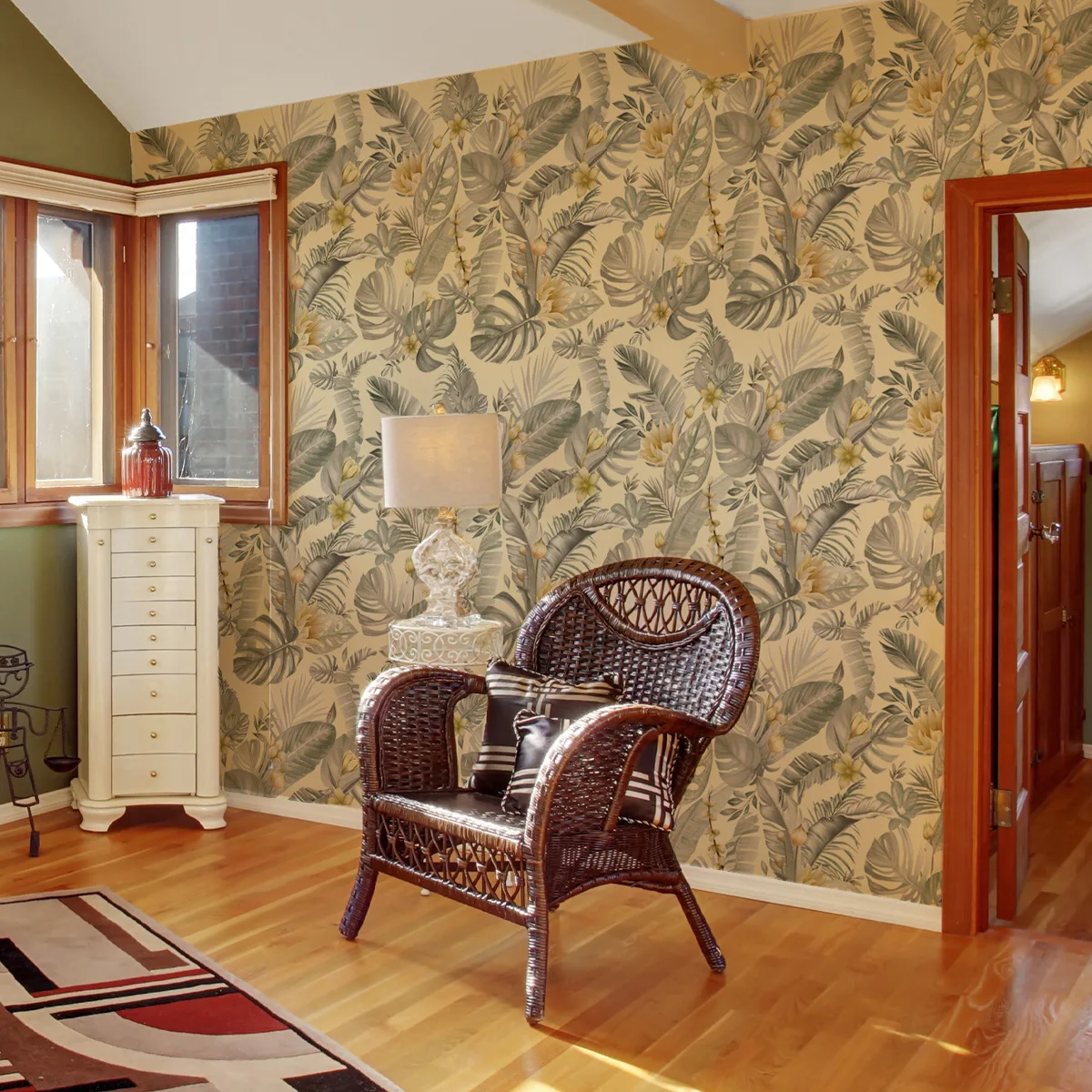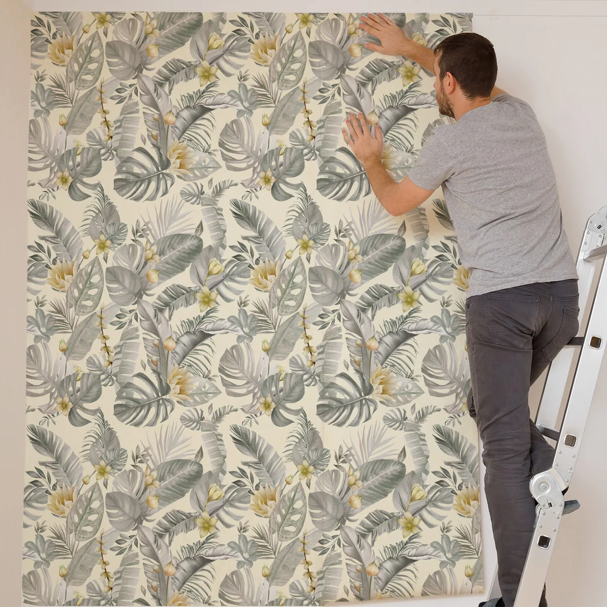 Peel & Stick Painéis de parede da floresta tropical - Arte de parede de plantas da selva para quarto/sala de estar, design de interiores moderno à prova d'água