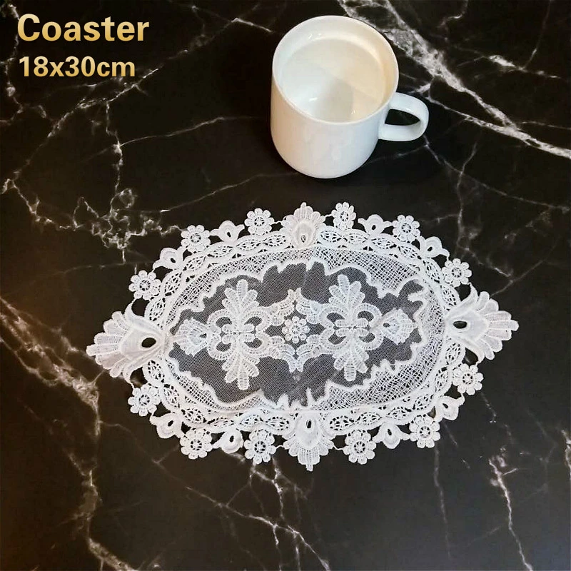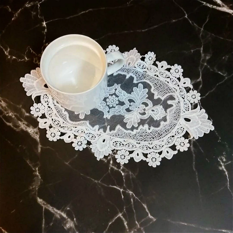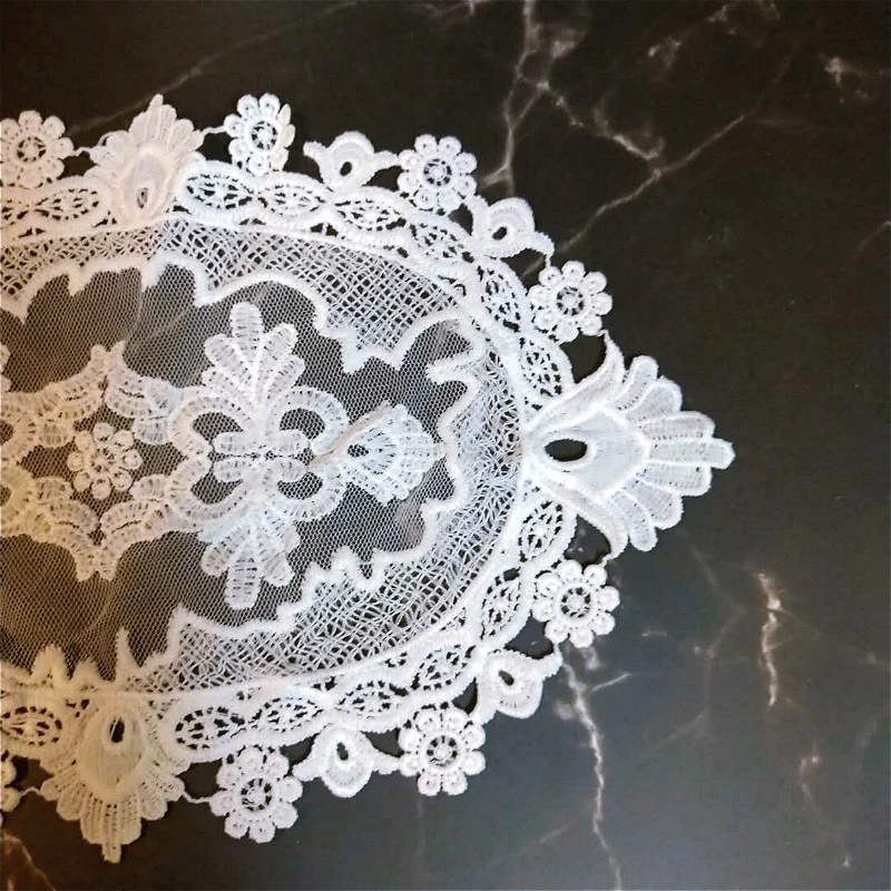 Estilo britânico rendado oval branco protetor de copos, porta-copos para café, varanda, decoração de festa e banquete