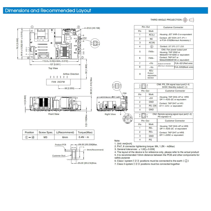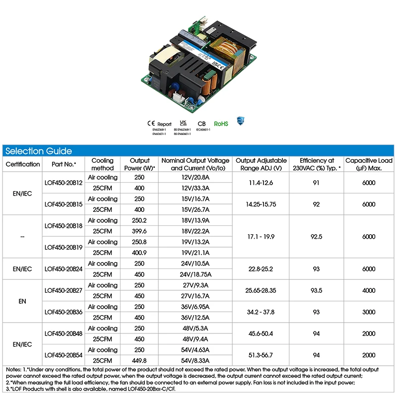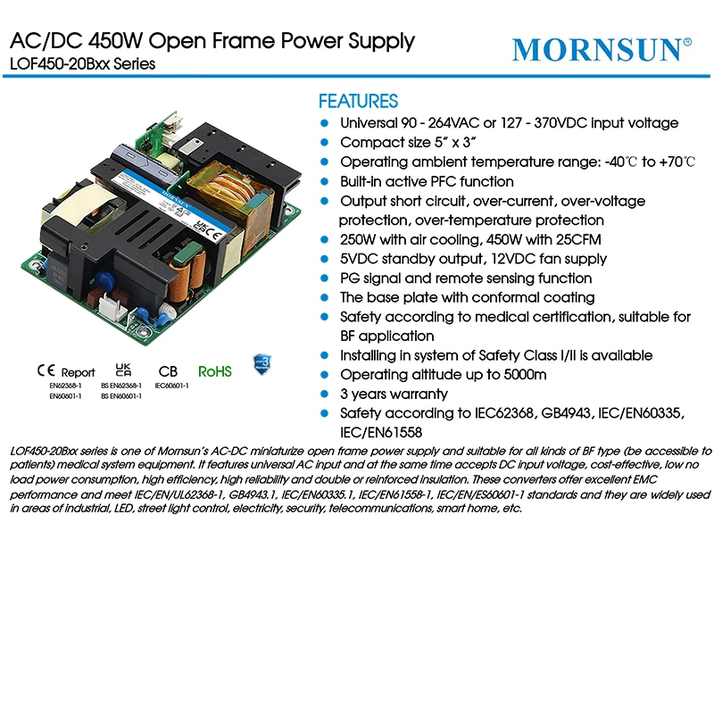 Fonte de alimentação de estrutura aberta MORNSUN AC/DC 450W série LOF450-20Bxx