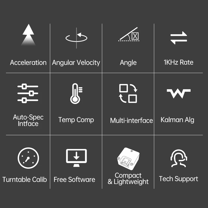 Sensor IMU de Grau Industrial e Automotivo WitMotion IWT603 com Acelerômetro de 3 Eixos + Giroscópio + Compensação de Temperatura Angular