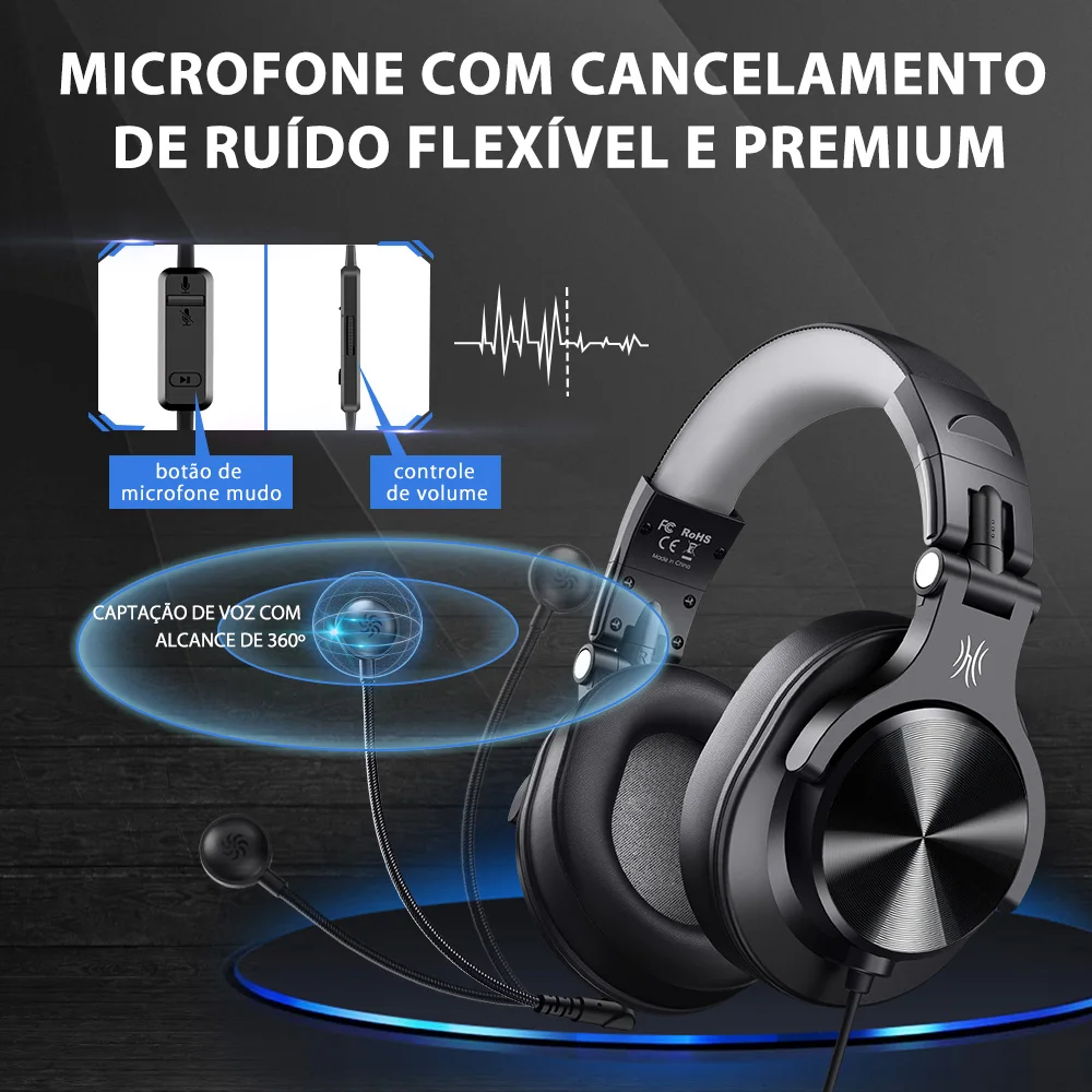 Oneodio-A71D Headset Gaming Wired, Gamer Over Ear, fones de ouvido de alta resolução, microfone destacável para PC, computador, PS4, PS5, Xbox