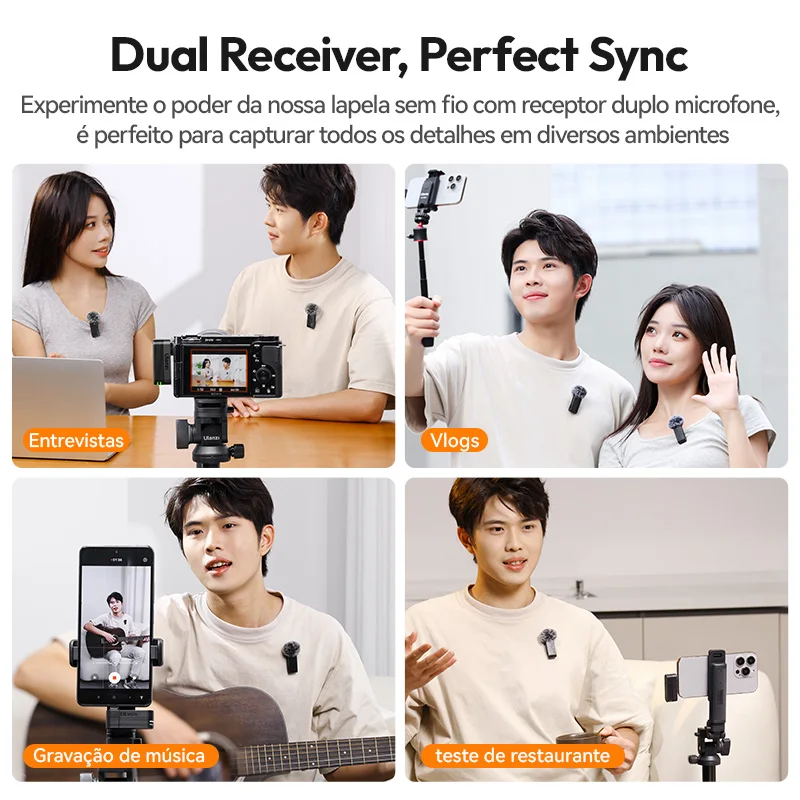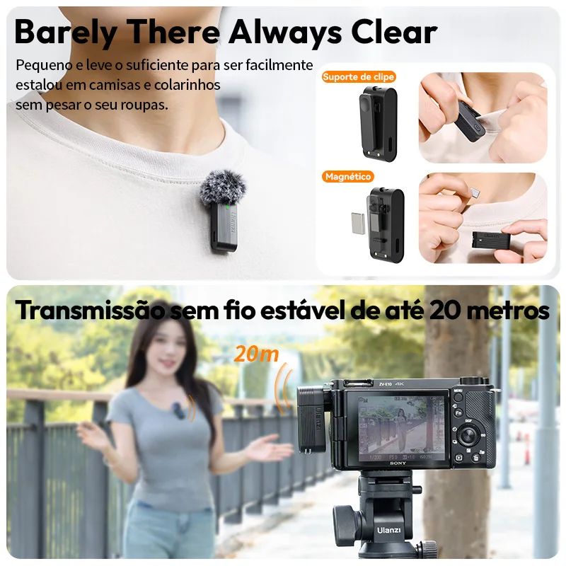 Ulanzi A100 Microfone Smartphone Microfone de lapela sem fio para iPhone 16 15 12 Xiaomi Samsung Dji Action 5 4 3 2 OSMO Pocket 3 SONY