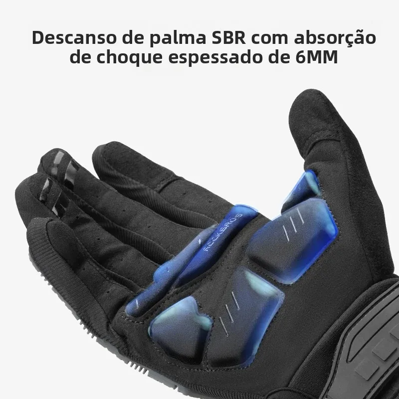 Luvas de Ciclismo ROCKBROS com Almofada Espessa SBR, à Prova de Choque, Respirável, Luvas de GEL para Bicicleta, Aquecedor de Inverno, Luvas Esportivas de Dedos Completos para MTB