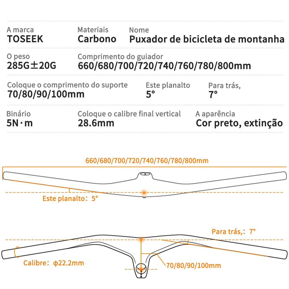 Toseek mtb guidão e haste 28.6mm-17degree carbono integrado guiador para mountain bike 660 ~ 800*70/80/90/100mm peças da bicicleta
