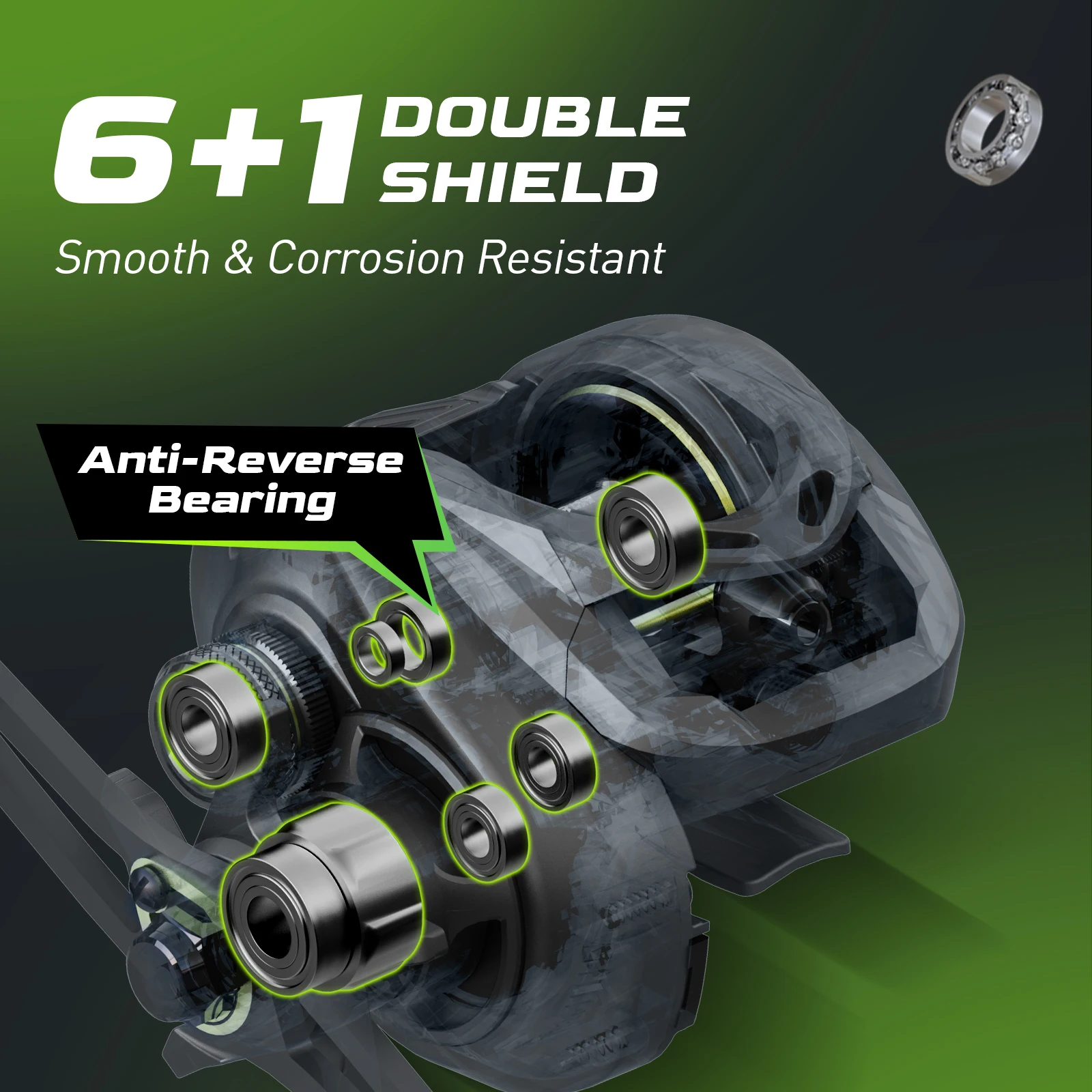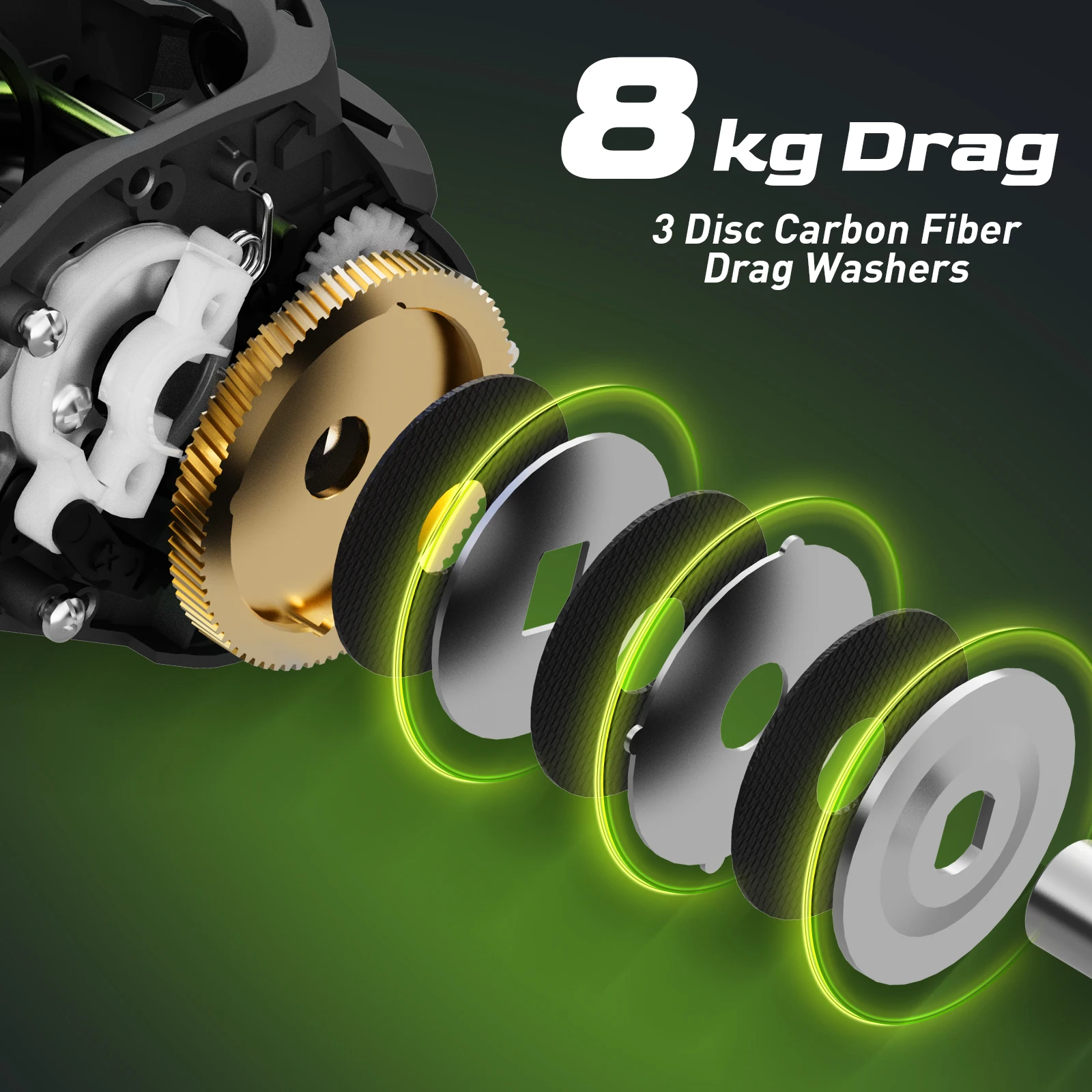 HANDING M1 Carretel de lançamento de iscas Arrasto máximo de 8KG Discreto Carretilha de pesca 6+1 Escudo Duplo BB 7.2:1 Relação de engrenagem 207G Baitcaster durável