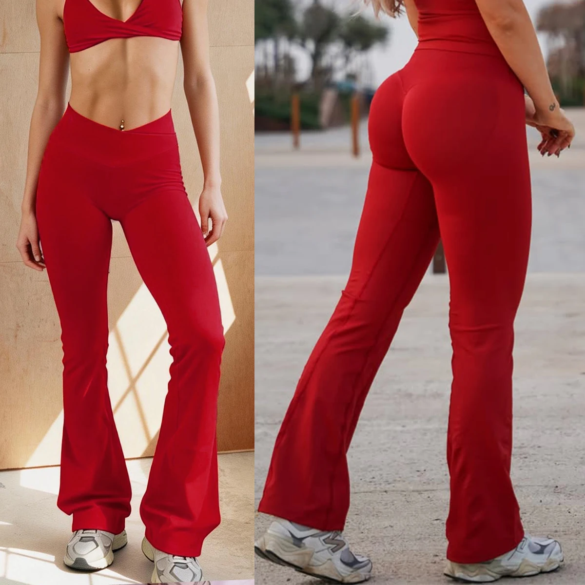 Calças Flare de Cintura Alta para Mulheres, Calças Largas Sem Costura, Calças de Ciclismo com Efeito de Amassado, Roupas de Academia