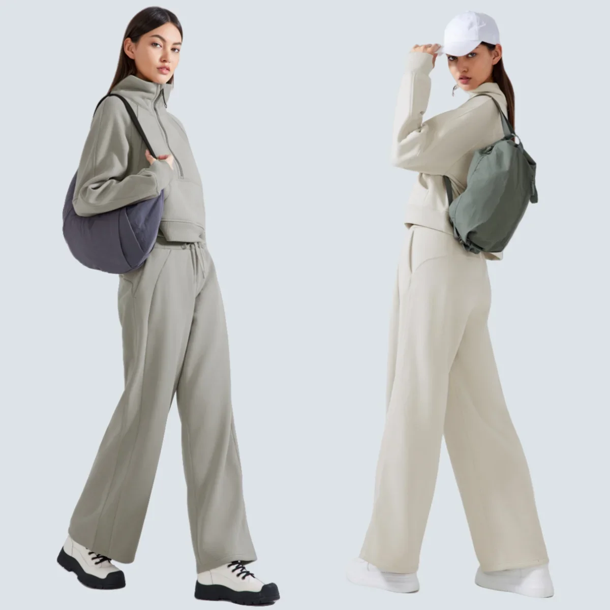 Inverno velo quente fitness sweatpants feminino 2025 commuter versátil em linha reta solta calças casuais moda feminina calças citywalk