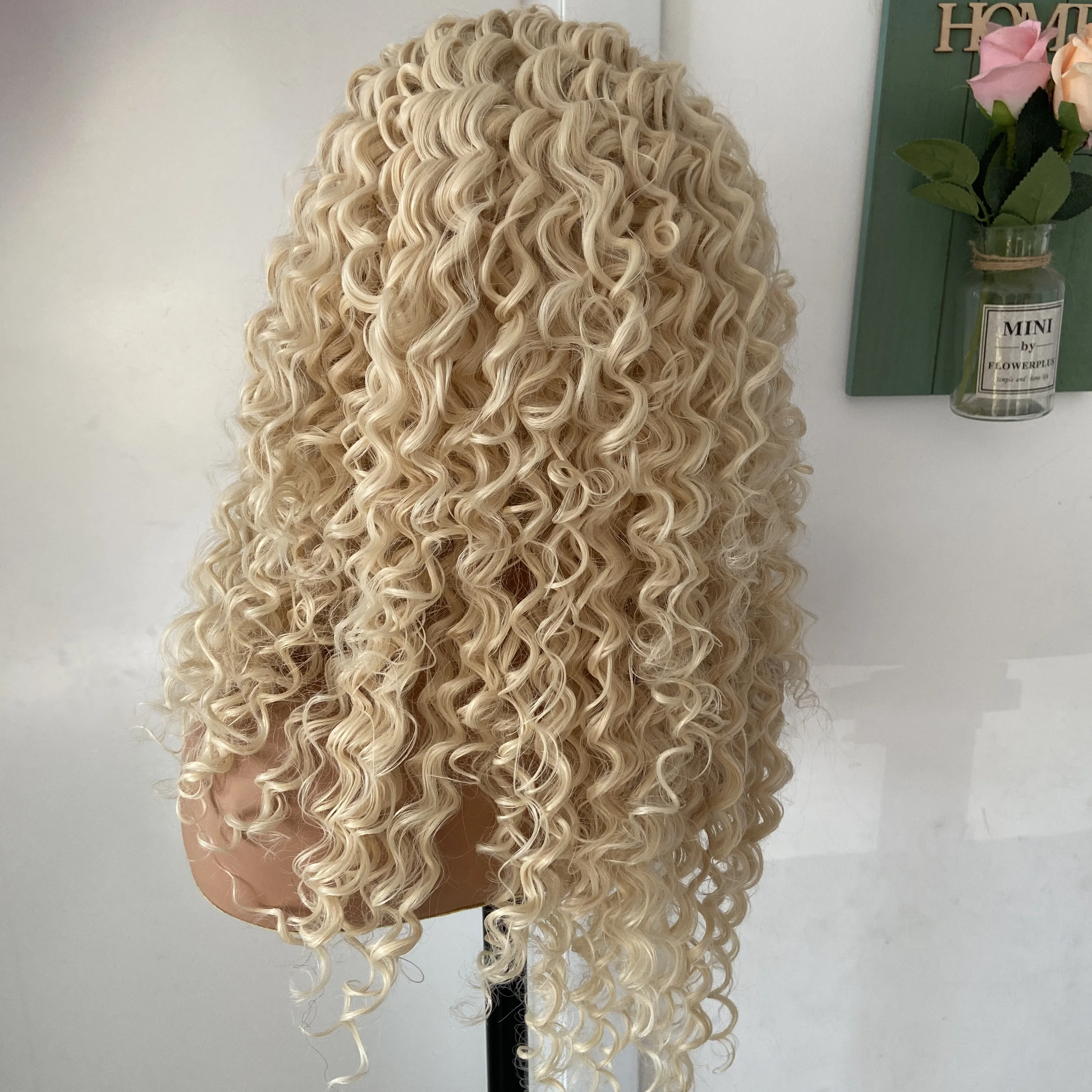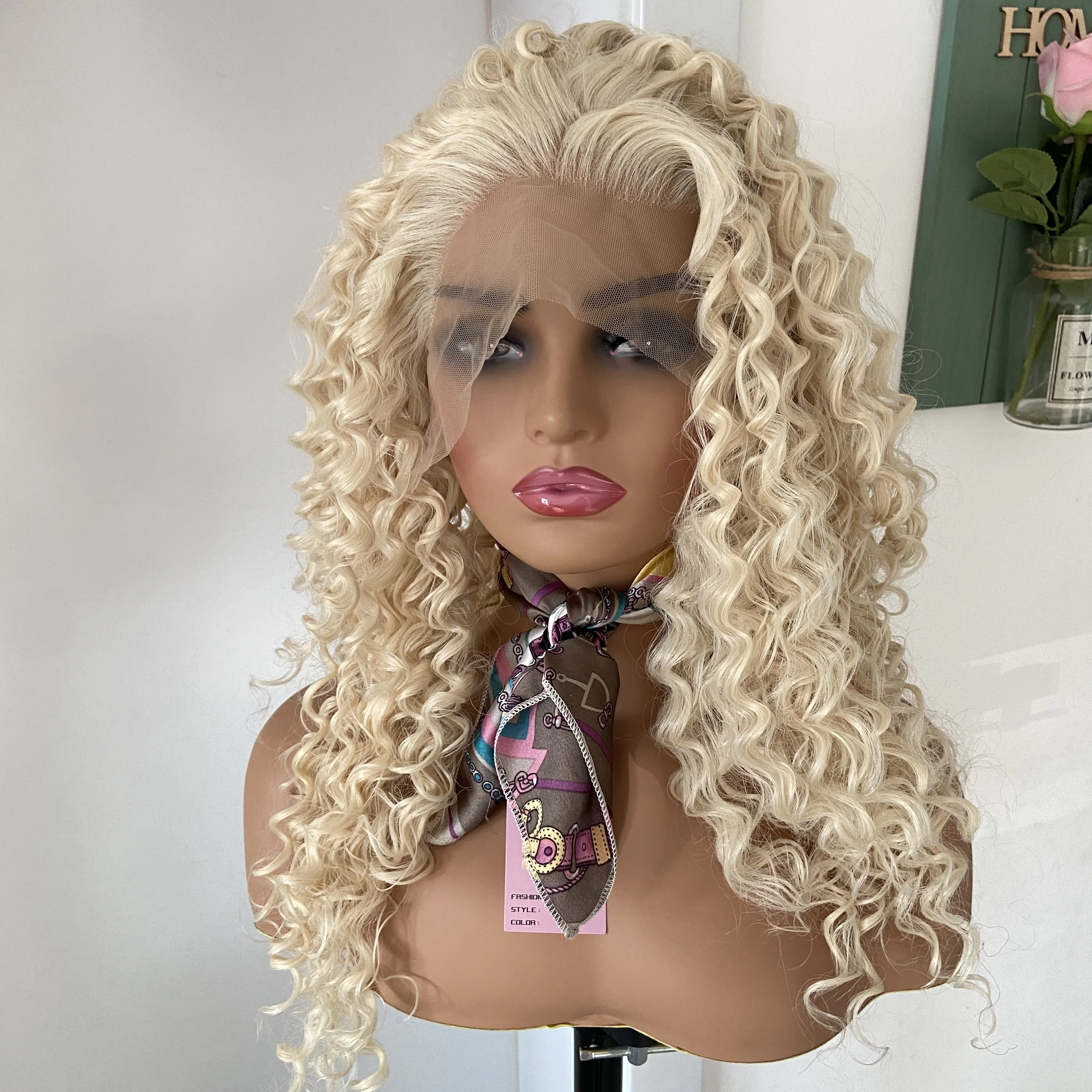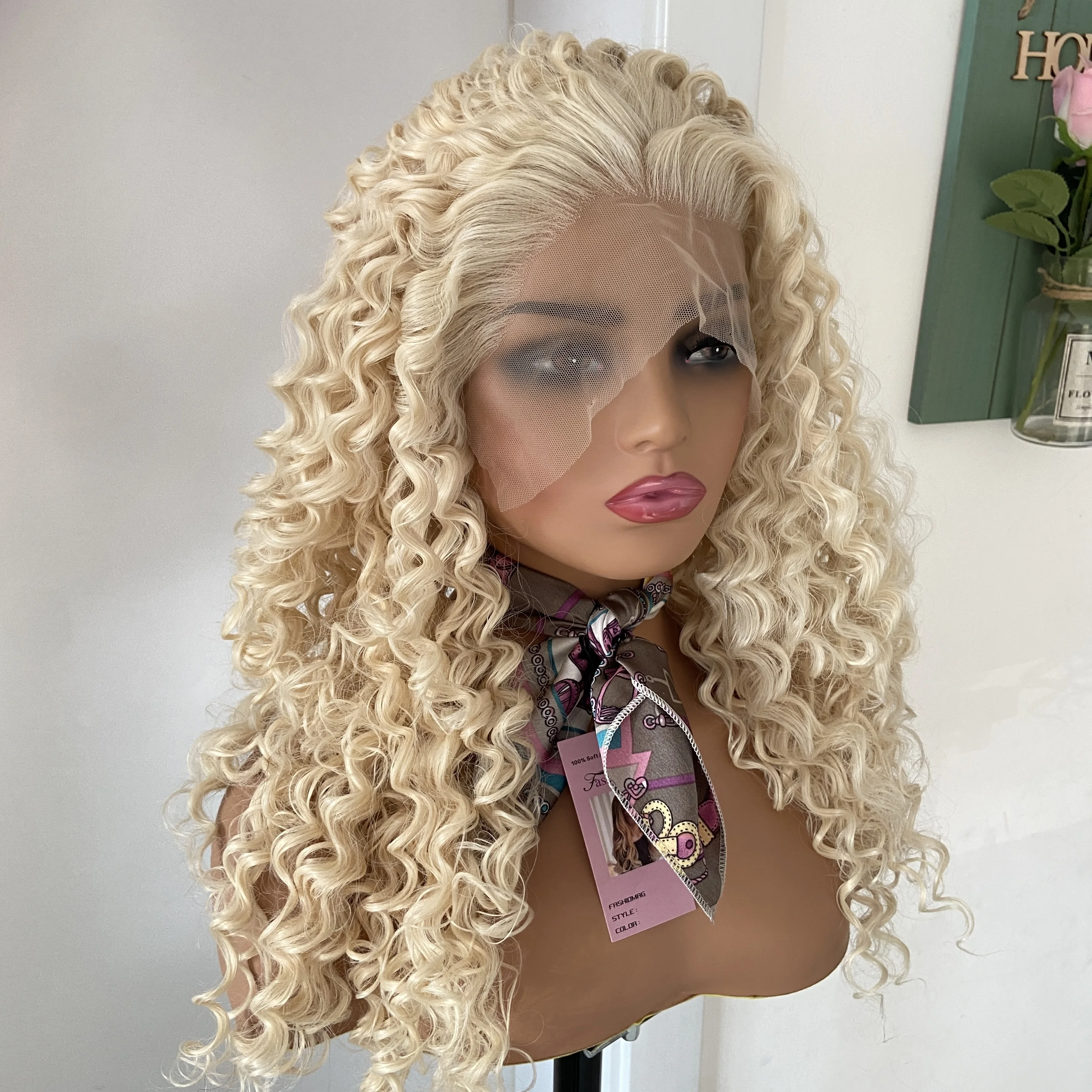 Fashiomag feminino loiro longo e encaracolado # 613 peruca dianteira de renda resistente ao calor peruca de fibra diária natural macia para mulheres