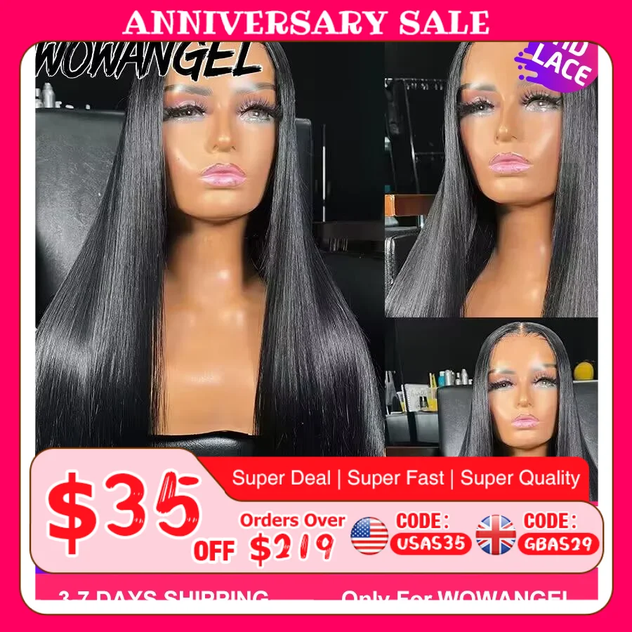 Wow Angel Ready to go Glueless Wigs 5x5 HD Lace Closure Human Hair Wigs 34inch Straight Pre Plucked Brazilian hair For Woman