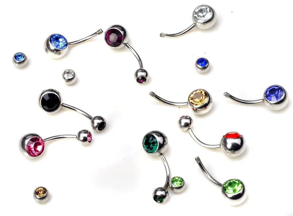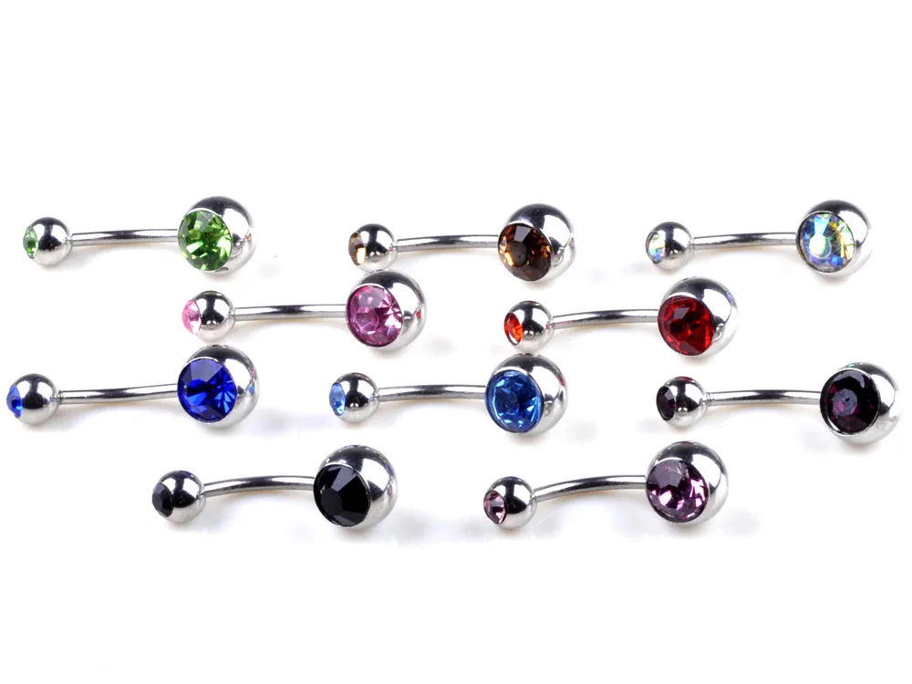 10 pçs/lote umbigo anéis de cristal aço cirúrgico corpo jóias barriga piercing sexo real umbigo anéis piercing ombligo pircing