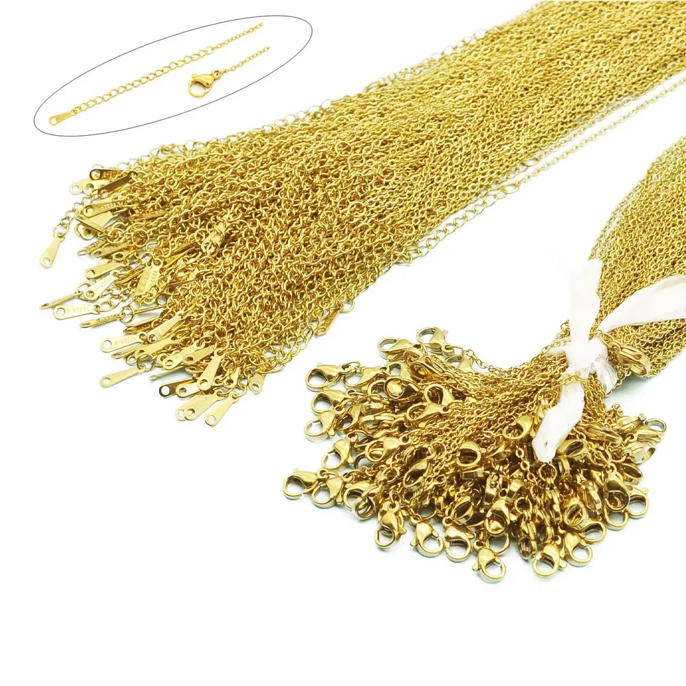 100 pçs/lote atacado em massa 304 aço inoxidável cor prata 45-50cm cabo link rolo corrente colar para mulheres diy jóias fazendo