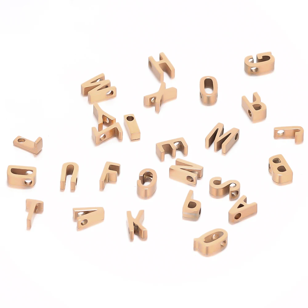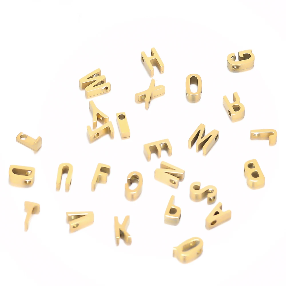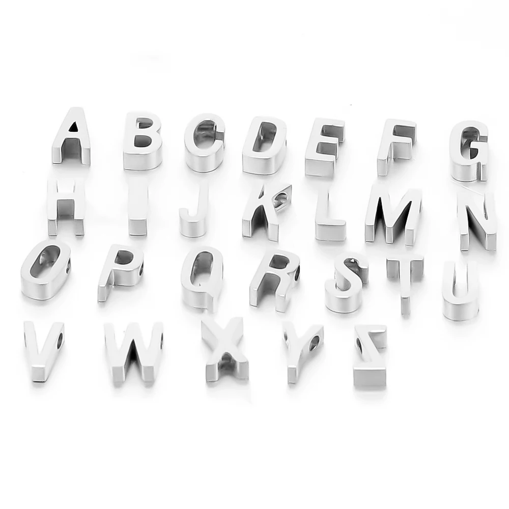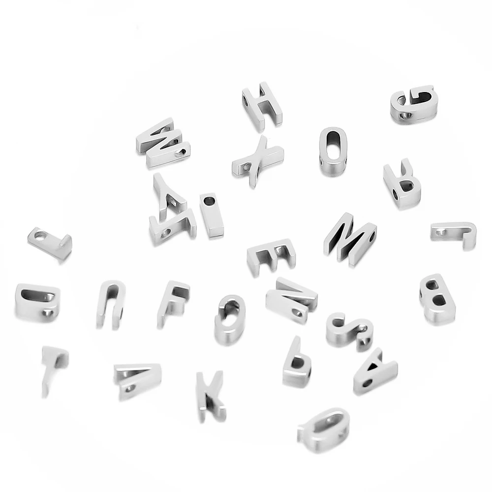 Aço inoxidável Letras do alfabeto Beads, Encantos Pulseira, DIY Fazer Jóias, Spacer Beads, Descobertas Colar Componentes, 5pcs