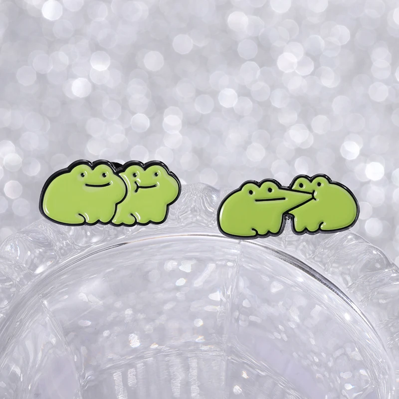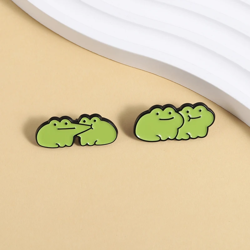 Adorável sapos amante esmalte pinos dos desenhos animados sapo beijo broches lapela emblemas kawaii animal jóias presente para amigos