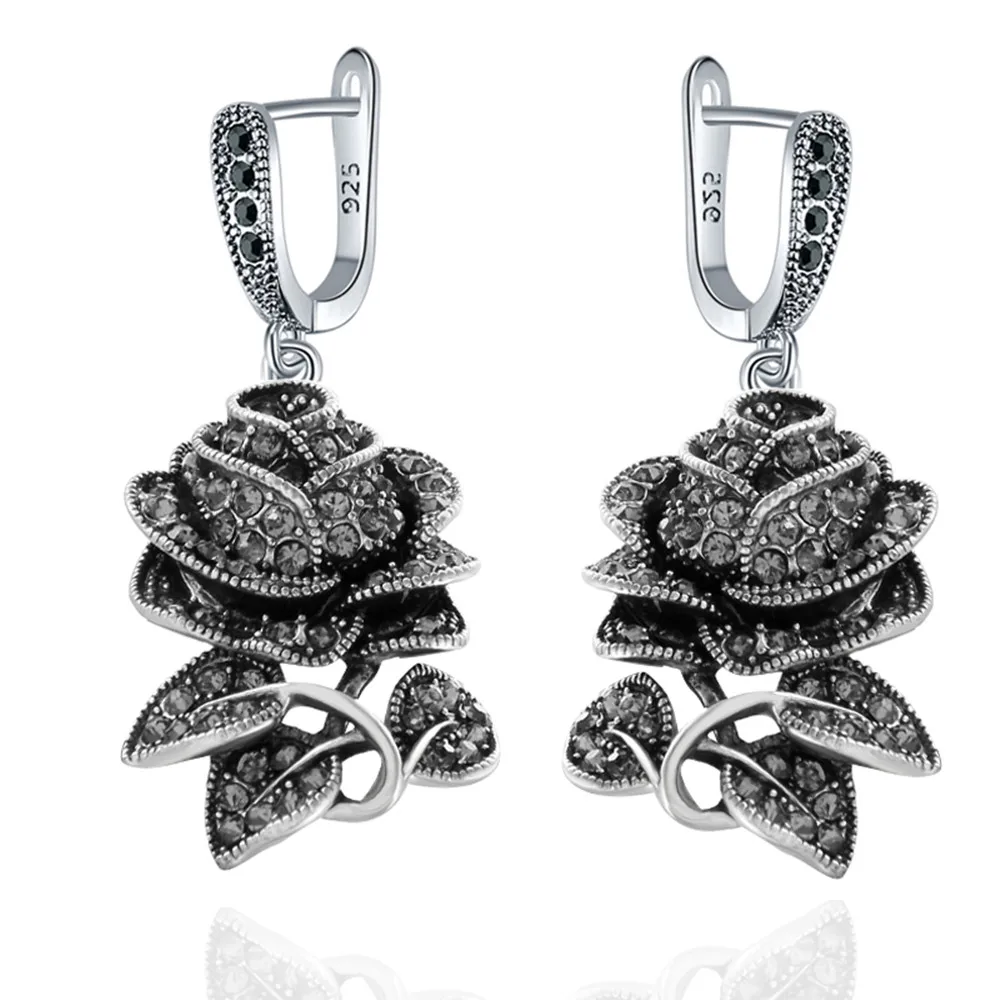 Ajojewel atacado preto cz rosa flor brincos feminino jóias vintage para festa presentes de casamento
