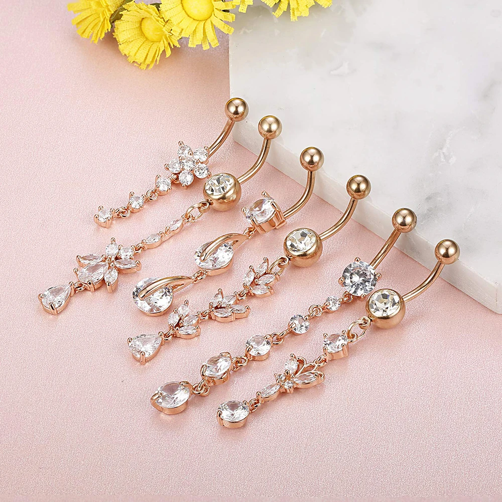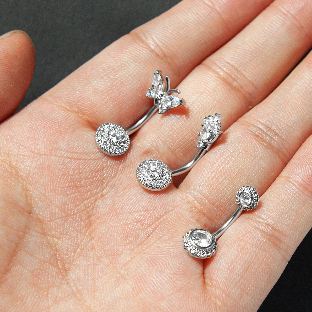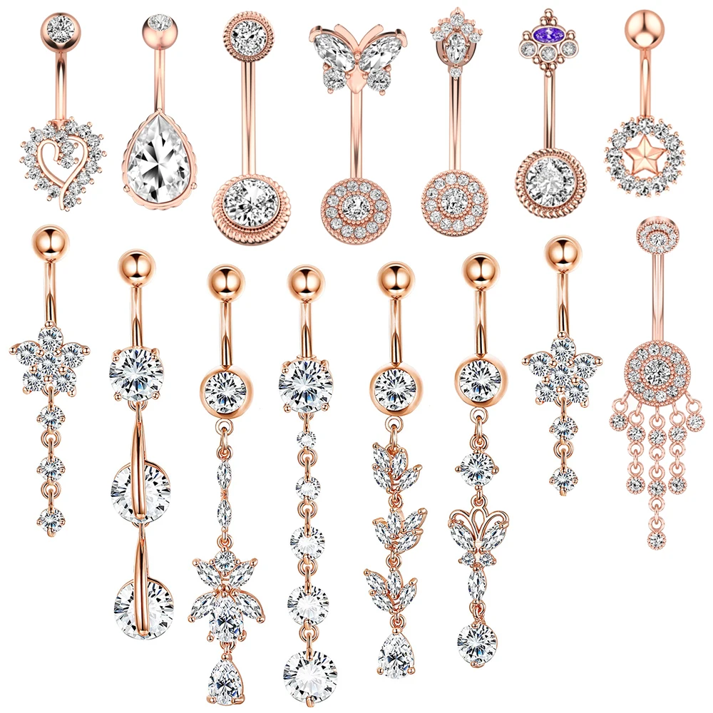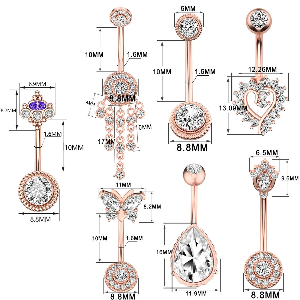 Anéis de botão de barriga de aço cirúrgico coração flor zircão cúbico balançar umbigo anel de piercing de barriga nombril ombligo feminino jóias do corpo