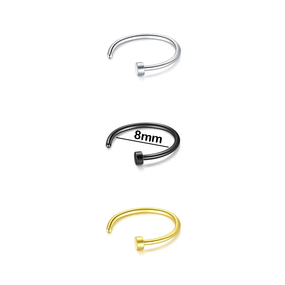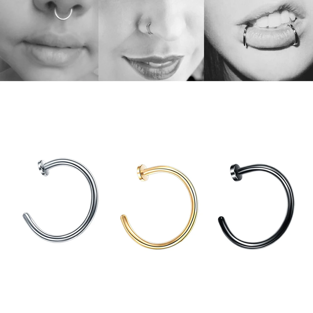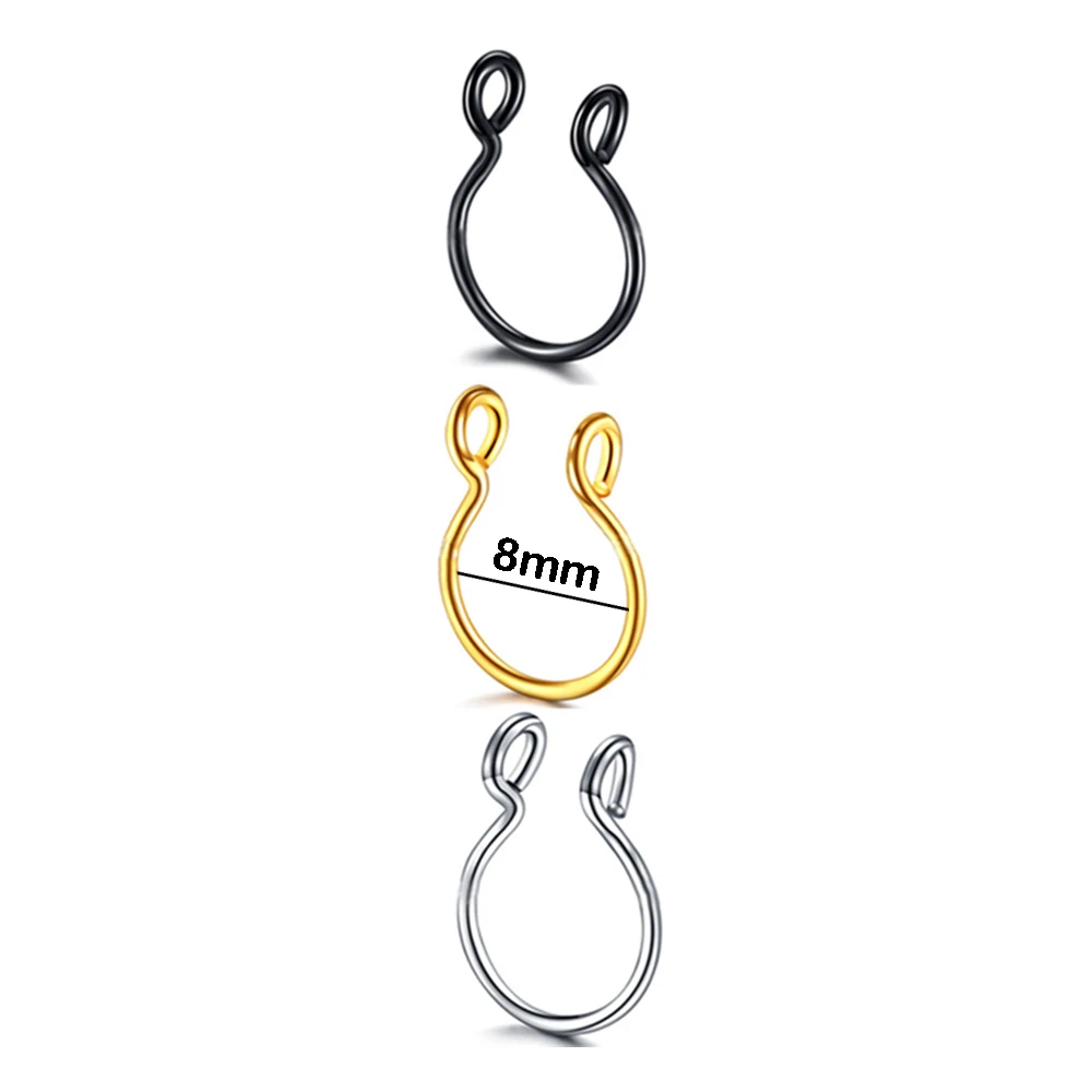 Anel de nariz de aço inoxidável, 2 peças, piercing, manguito, joia corporal indiana, piercing de septo falso, anéis de nariz, acessórios punk, argola labial sexy