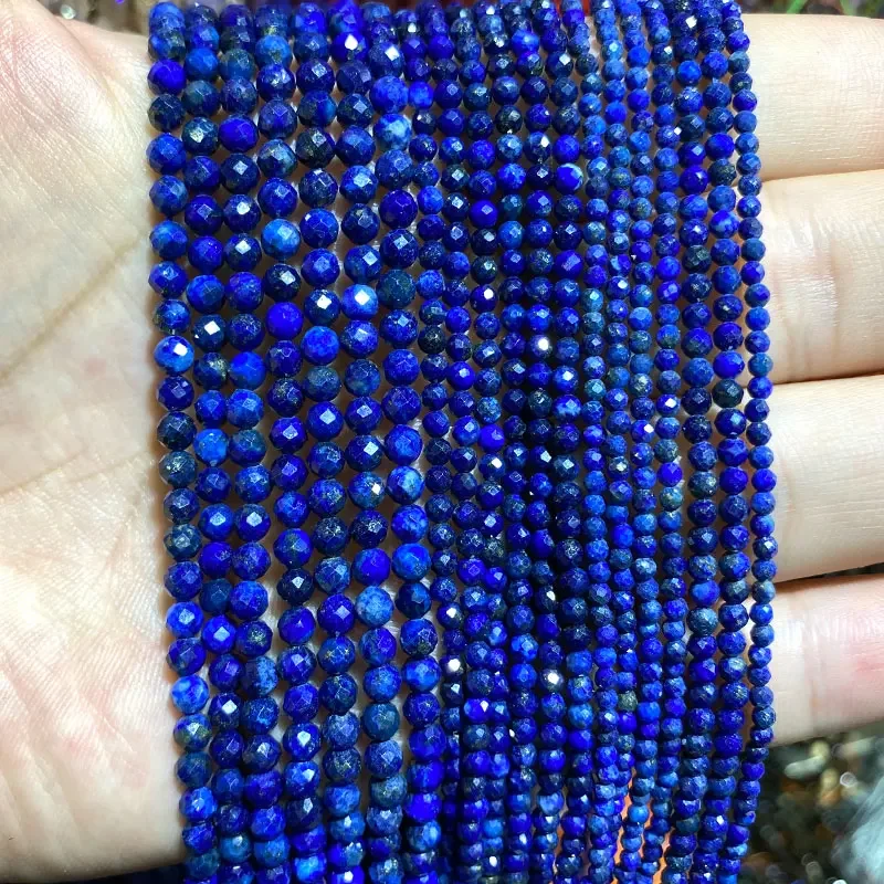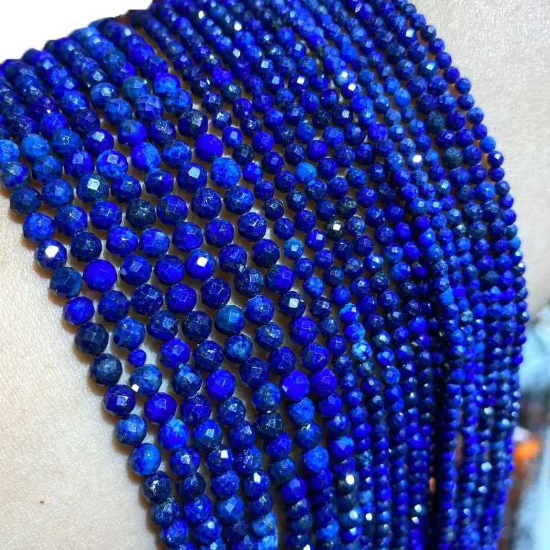 Atacado 100% pedra preciosa natural lápis-lazúli contas redondas facetadas para fazer jóias diy pulseira colar 2mm 3mm 4mm