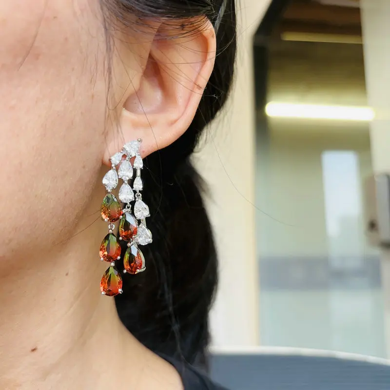 Brinco de borla de zircônia cúbica verde Bilincolor para mulheres joias de casamento