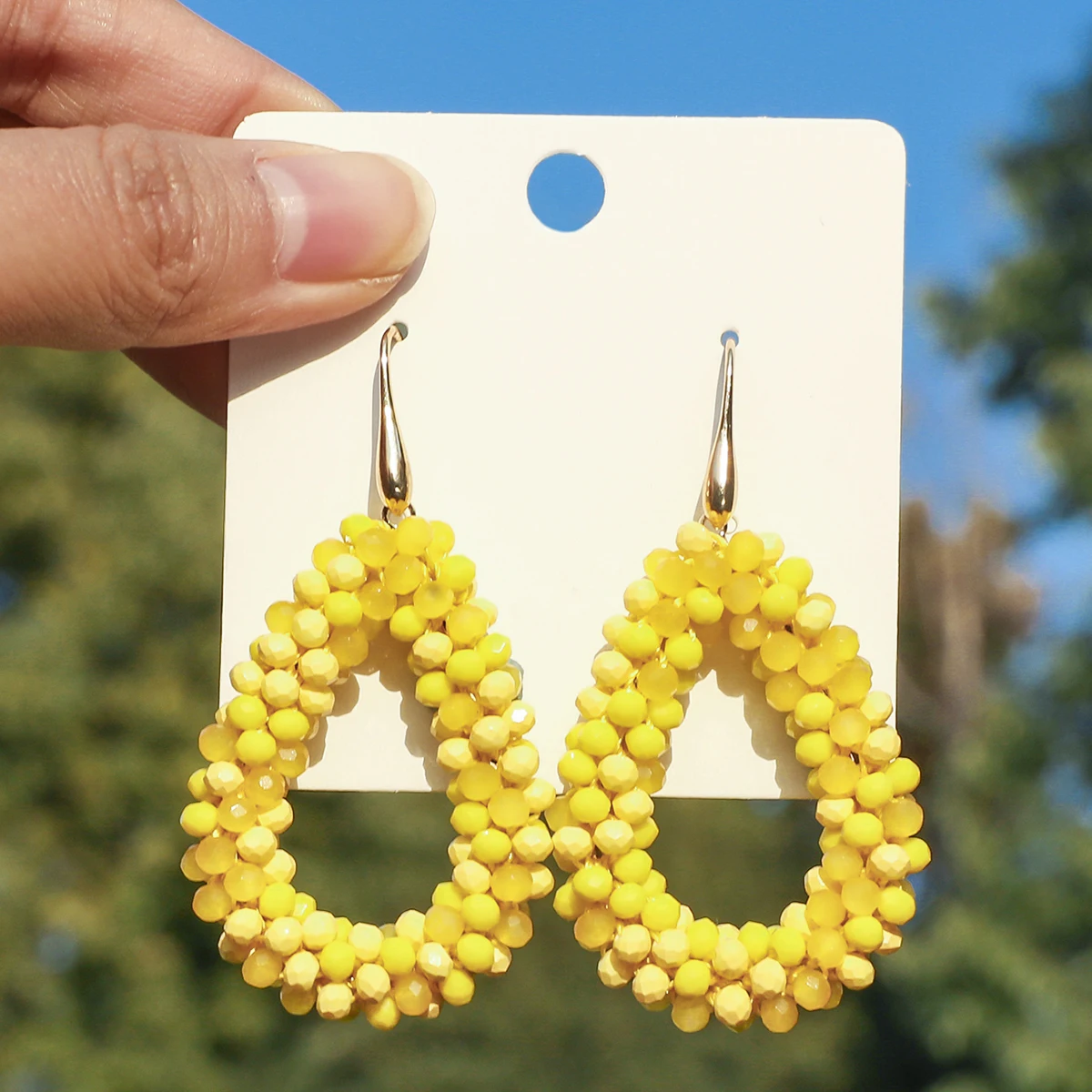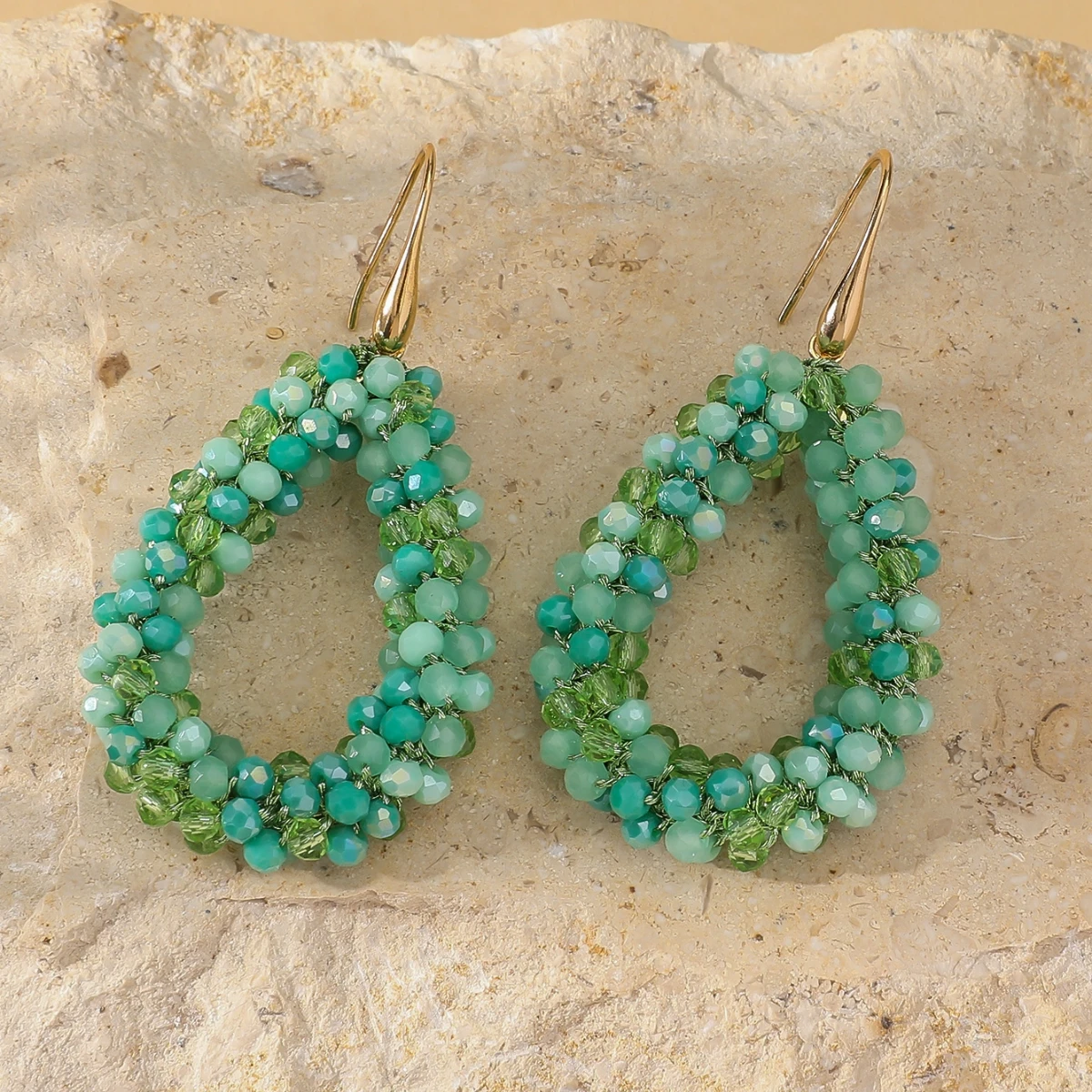 Brincos de gota de água multicoloridos estilo boho para mulheres elegantes contas de cristal artesanais penduradas joias de festa de verão na praia