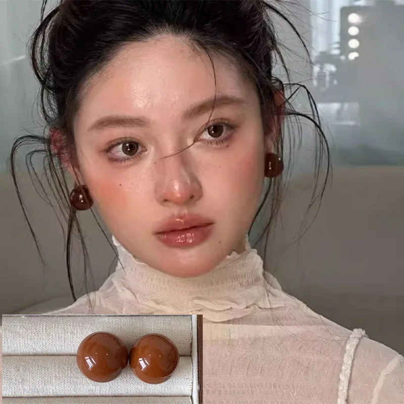 Brincos Simulados Grandes Meia Redonda Exagerada para Mulheres, Estilo Ins, Branco Statement, Joalheria Coreana, 1,8 cm