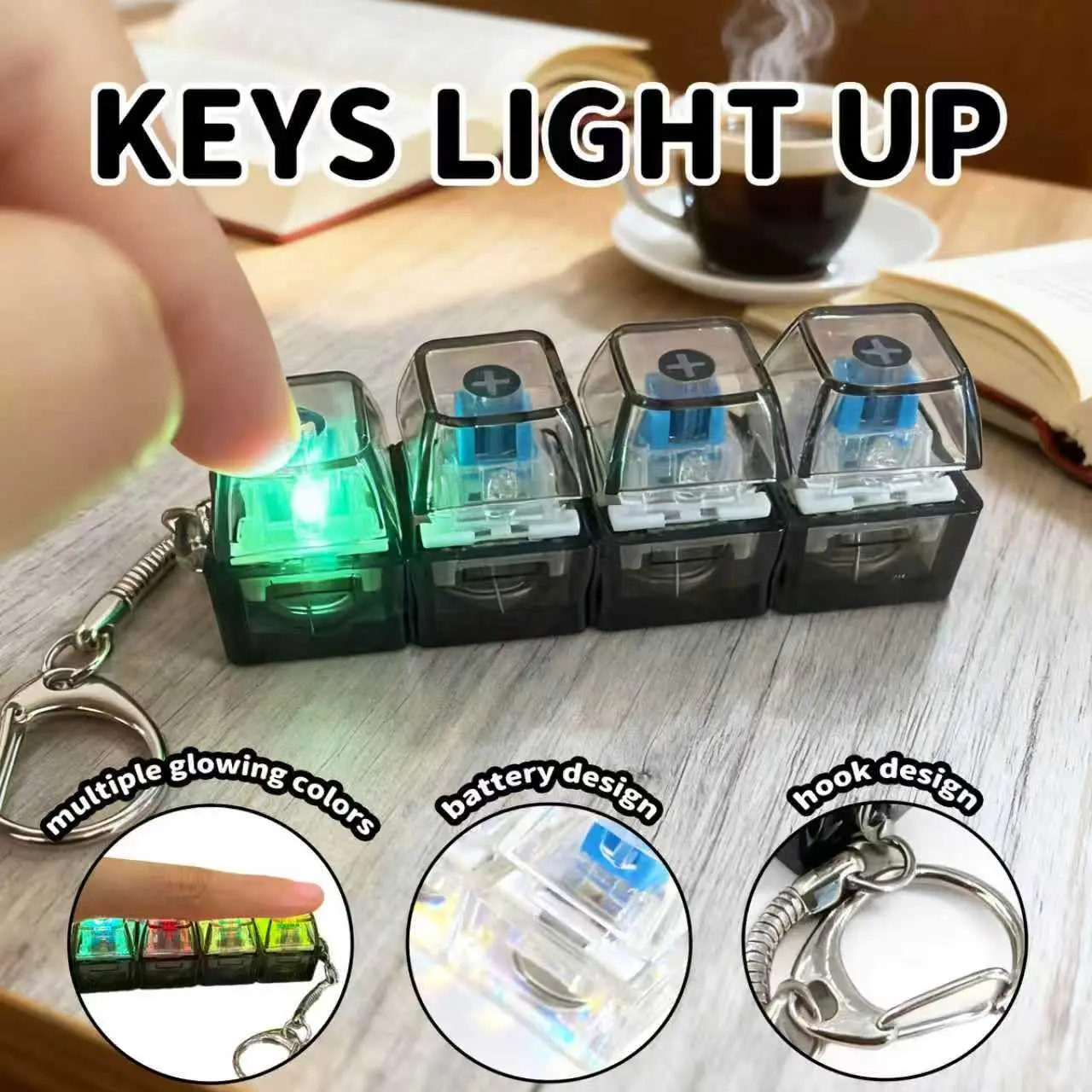 Chaveiro de inquietação de teclado, clicker de dedo de botão de teclado para alívio de ansiedade, chaveiro de charme de estilo divertido de clicker de luzes transparentes