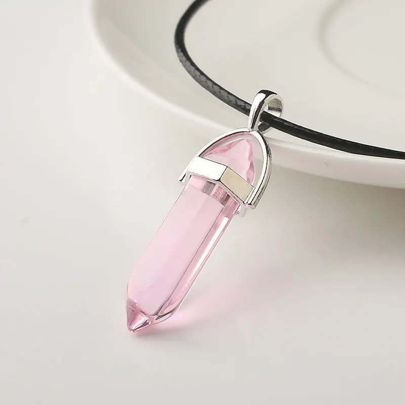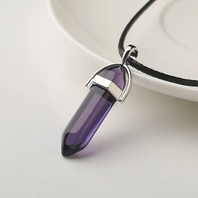 Colar com pingente de pedra natural, presente para mulheres e meninas, couro pu, pilar hexagonal, joias pontiagudas