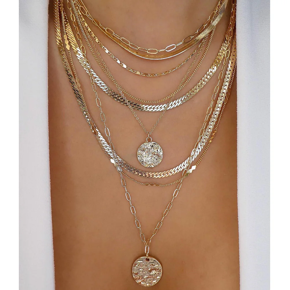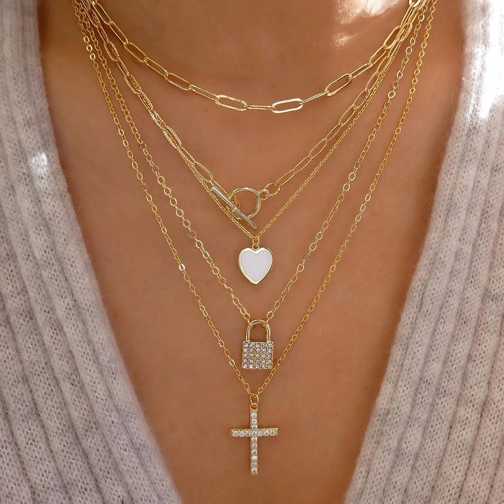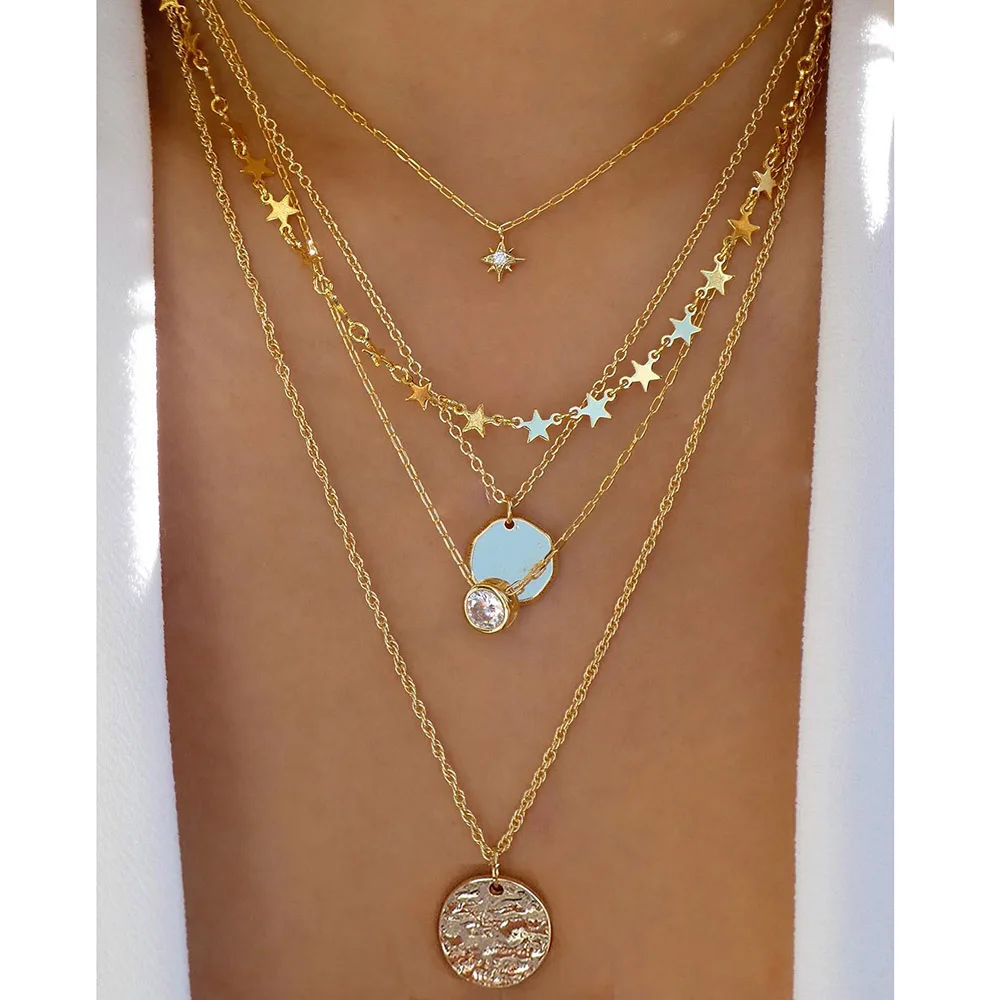 Colar cor dourada Bohemia para mulheres, estilos múltiplos, pingente de cristal de várias camadas na moda, conjunto de colares, joalheria, novo, 2024