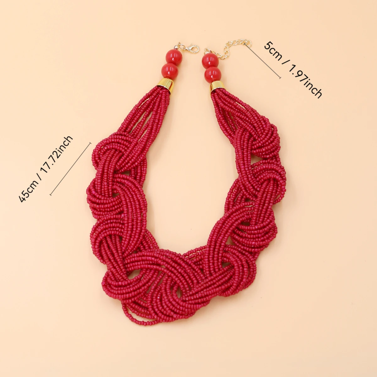 Colar de contas de arroz multicamadas tecido à mão estilo étnico boêmio unissex joias de material natural
