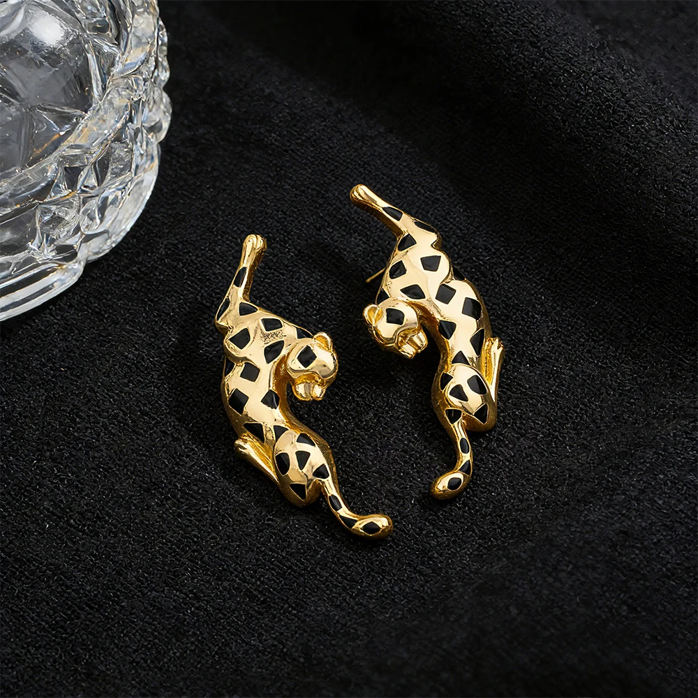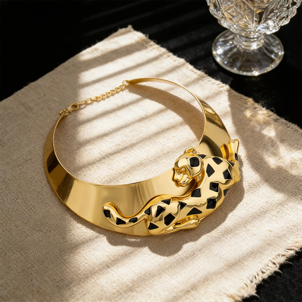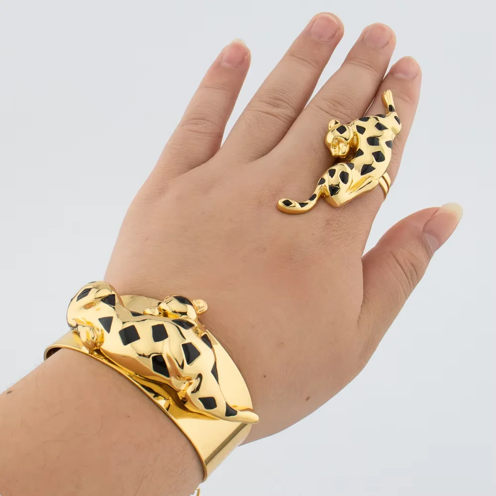 Conjunto de jóias banhado a ouro 18k para mulheres, colar e brincos leopardo, forma animal, pulseira e anel, cobre Dubai Jewelry Gift, moda africana