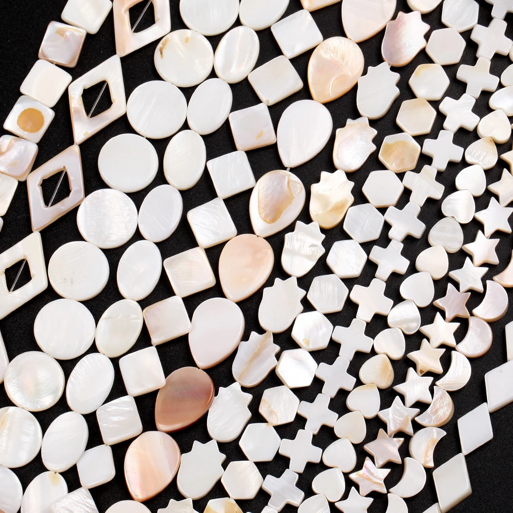 Contas de concha branca natural mãe de pérola amor coração cruz estrela lua redonda espaçador contas para fazer jóias diy pulseira artesanal