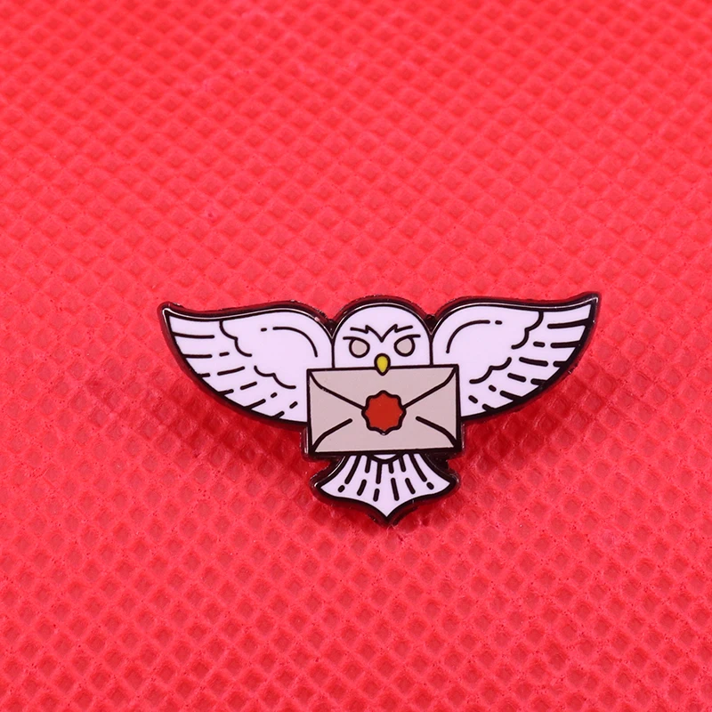 Coruja post mail broche magia bruxa orgulho decoração distintivo