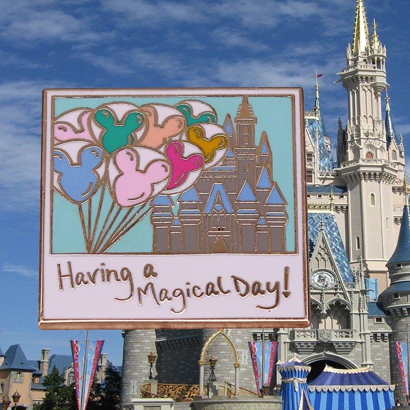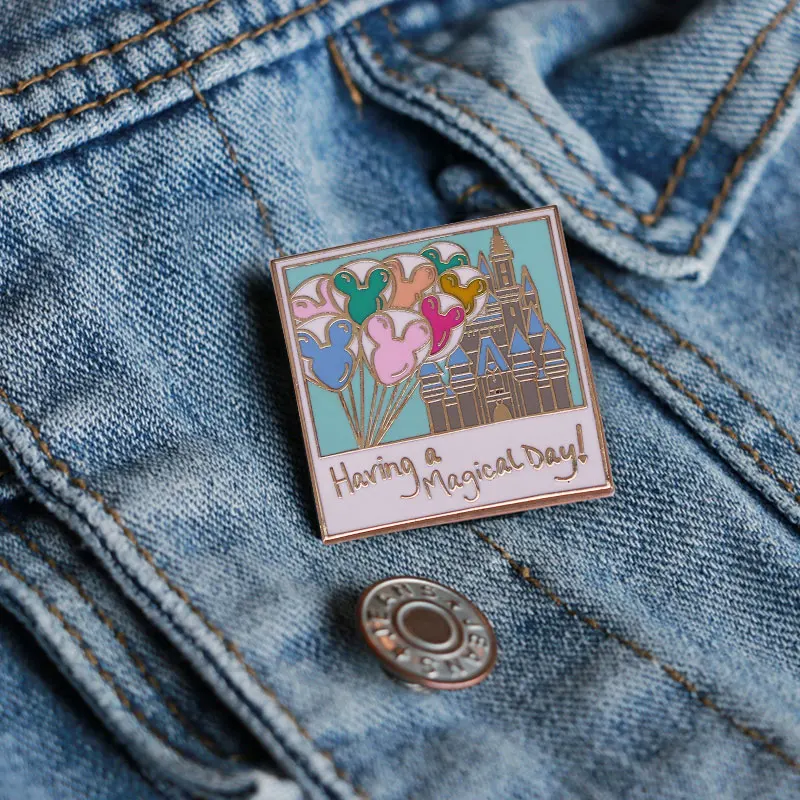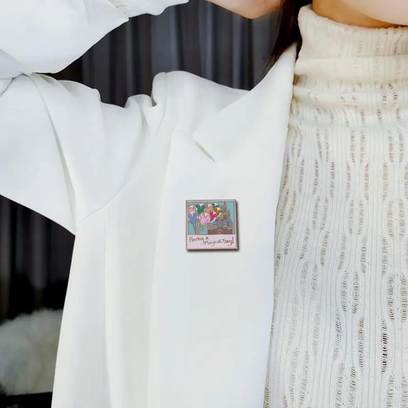 Dia mágico balões castelo lembrança foto esmalte pino felizes memórias românticas broche comemorativo crachá presente de aniversário