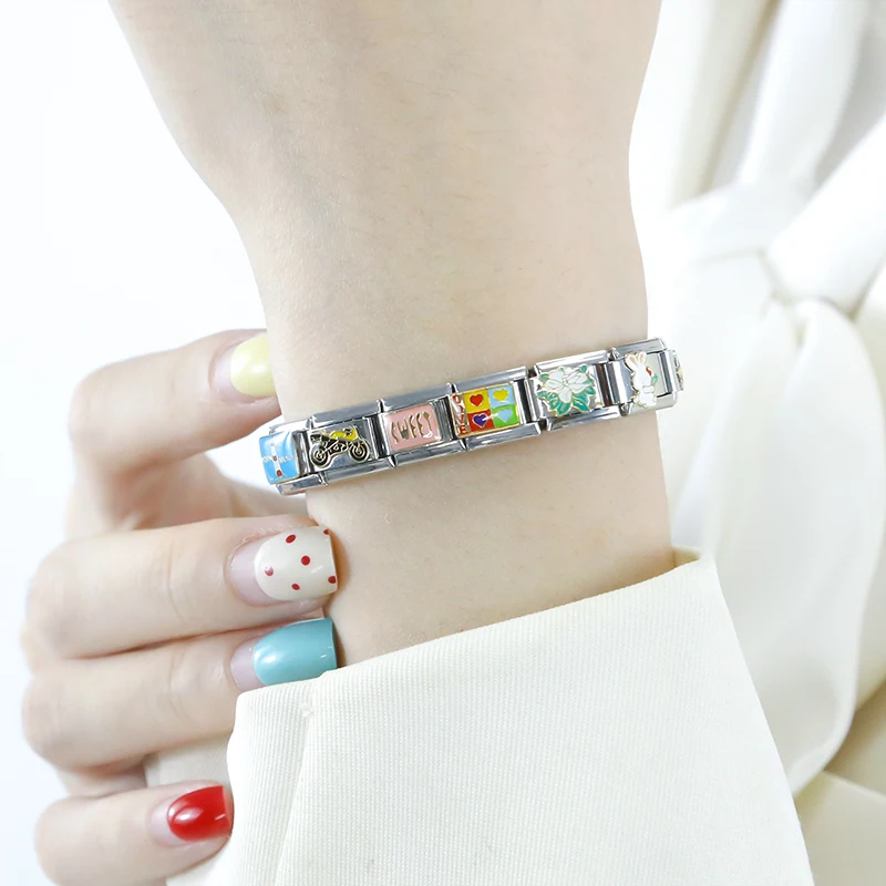 Hapiship novo cavalo amor borboleta mãe cão motocicleta mãe elefante charme caber 9mm pulseira de aço inoxidável jóias fazendo dj003