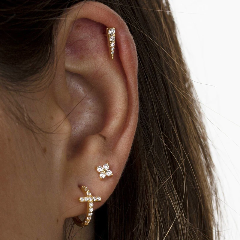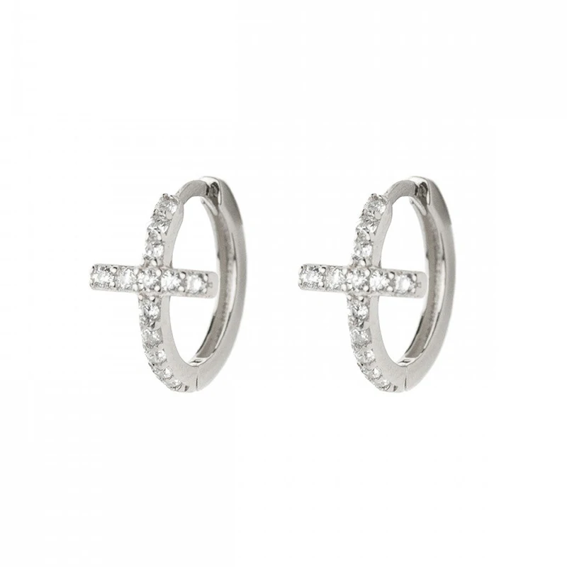 Isueva sorte ouro enchido cz huggie círculo cúbico zircon cruz hoop brincos para mulher noivado casamento jóias