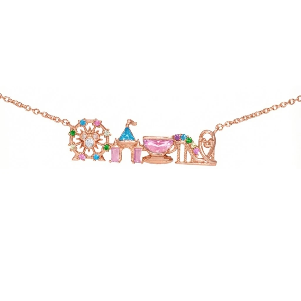 Novo Colar de Parque de Diversões com Zircônia Colorida e Fofa para Mulheres e Meninas, com Pingente de Castelo e Vegetais, Joia da Moda
