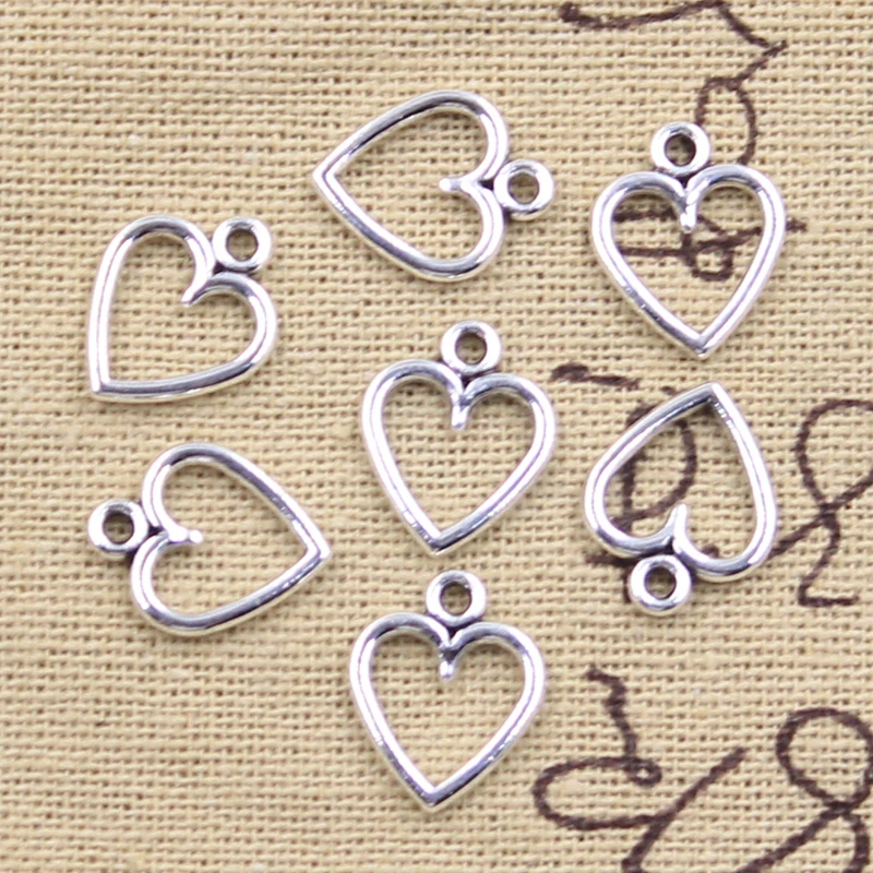 Oco Adorável Encantos De Coração, Pingentes De Cor Prata Antigos, Fazer Jóias DIY, Encontrar Tibetano Artesanal, 14x11mm, 50Pcs