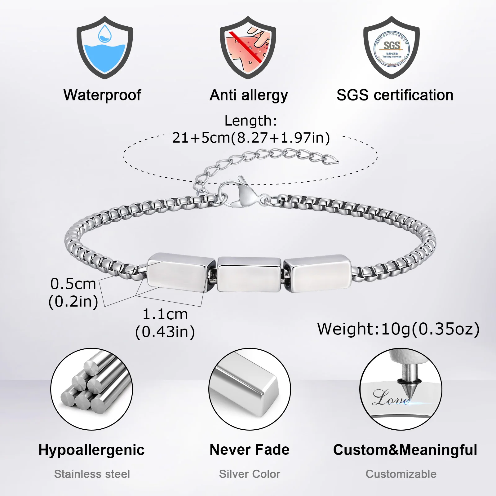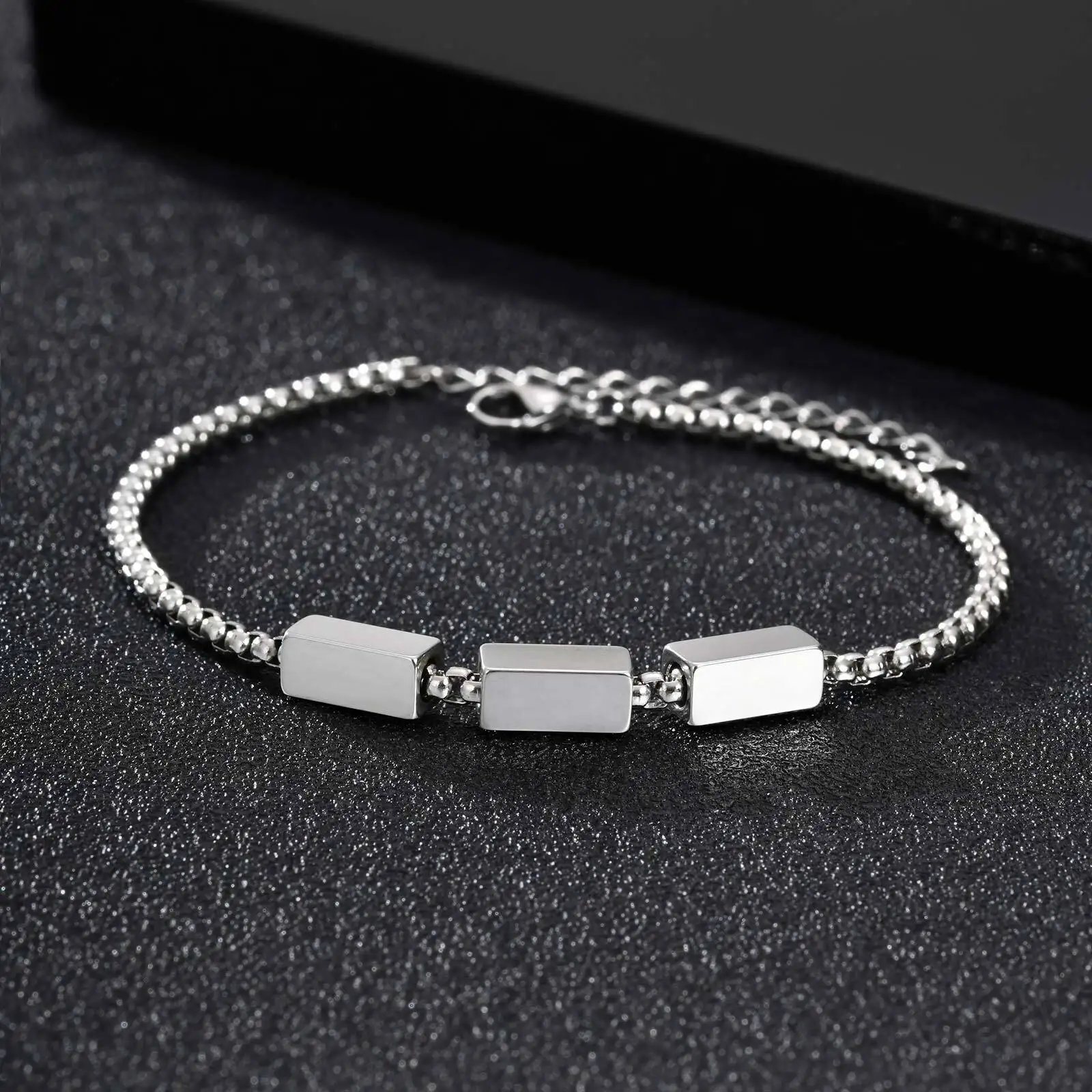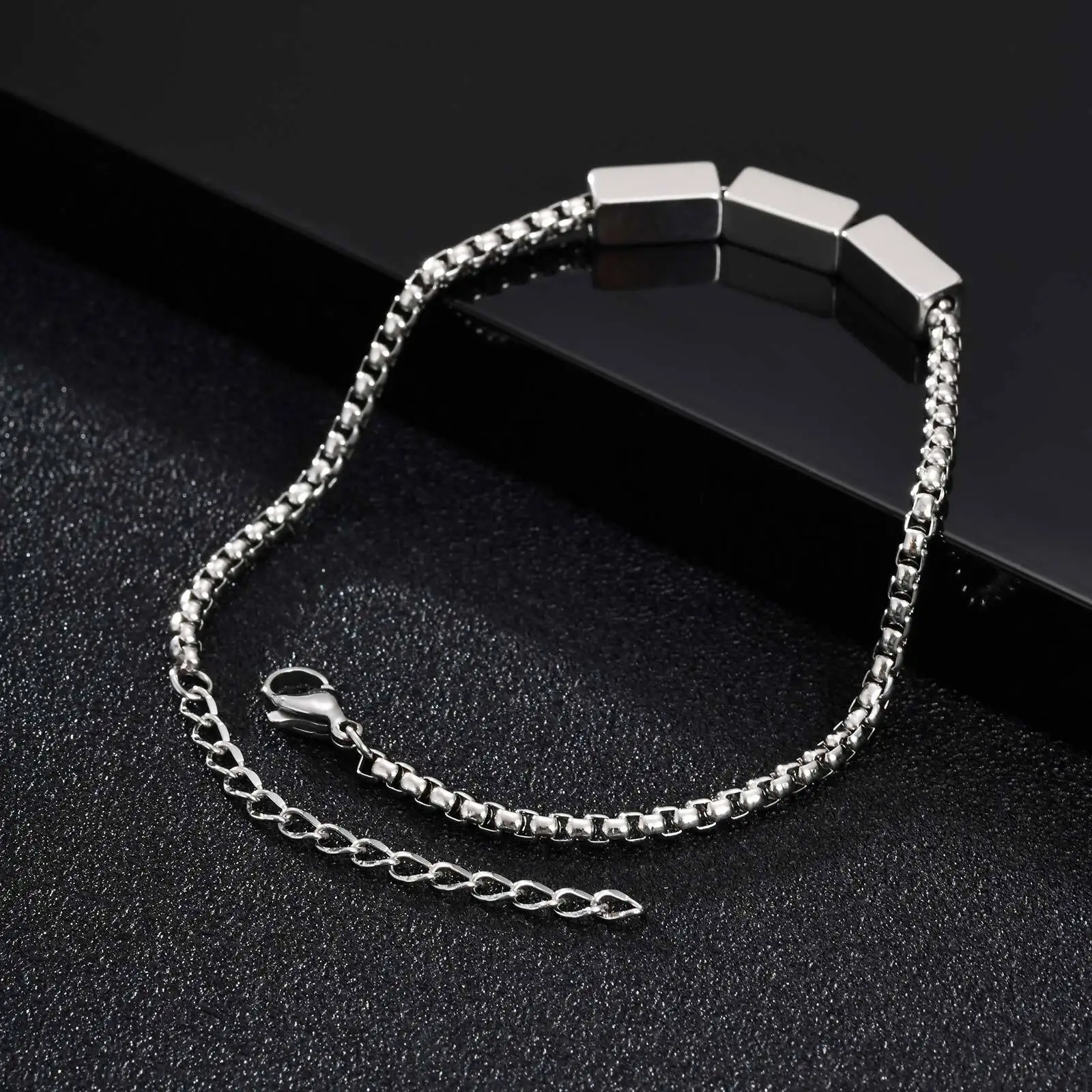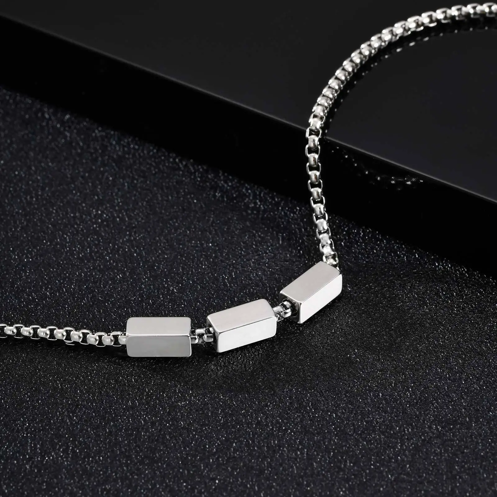 Pulseiras de corrente de caixa de aço inoxidável Vnox para homens adolescentes, pulseiras geométricas com pingente de tubo quadrado, presente de joias de metal ajustável